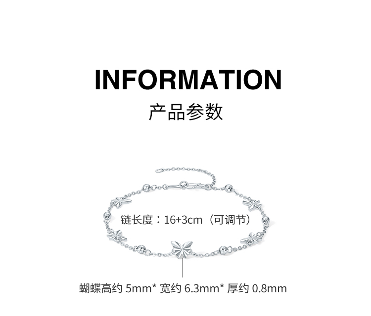 周六福铂金pt950手链女款蝴蝶结简约甜美百搭手链送女友礼物