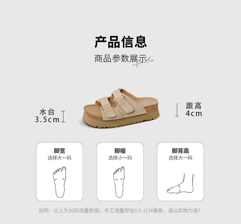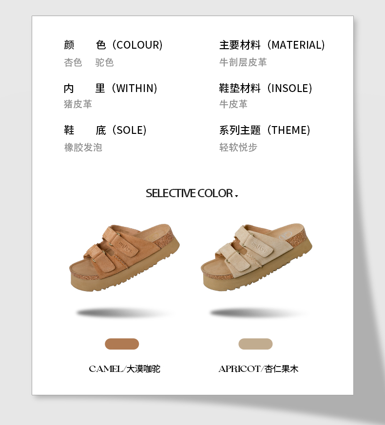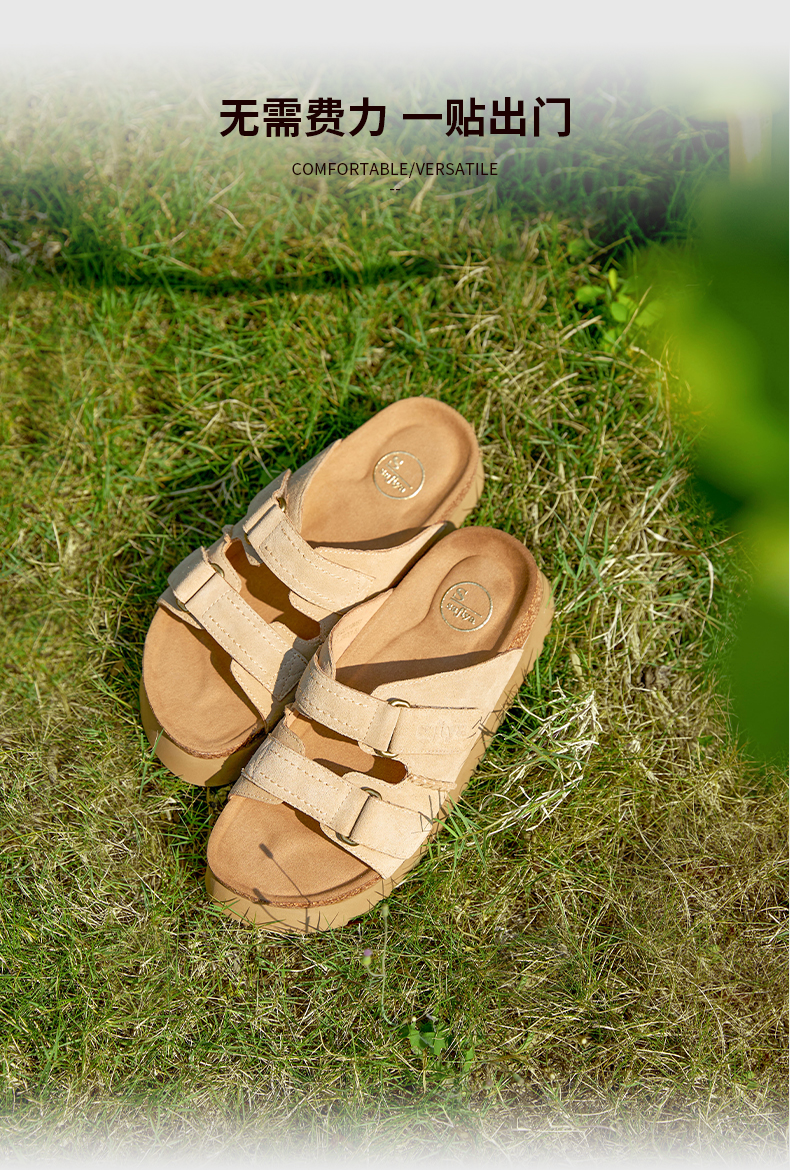 Safiya/索菲娅2025夏季休闲外穿增高厚底魔术贴一字带勃肯凉拖 SFD2110157/SFD2110M57