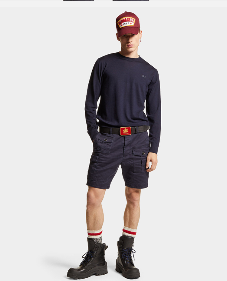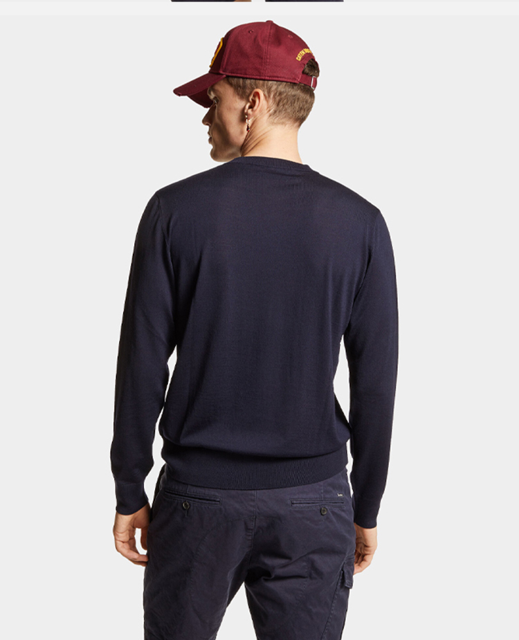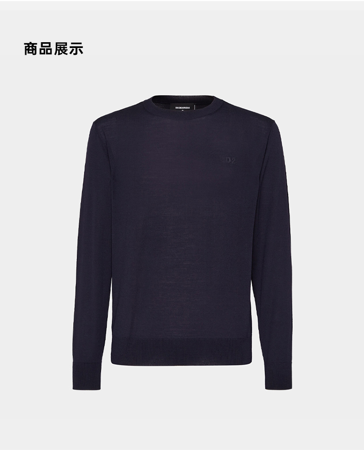 【一】DSQUARED2 男士“D2”刺绣徽标羊毛针织衫 蓝色 S74HA1442 S18310 477