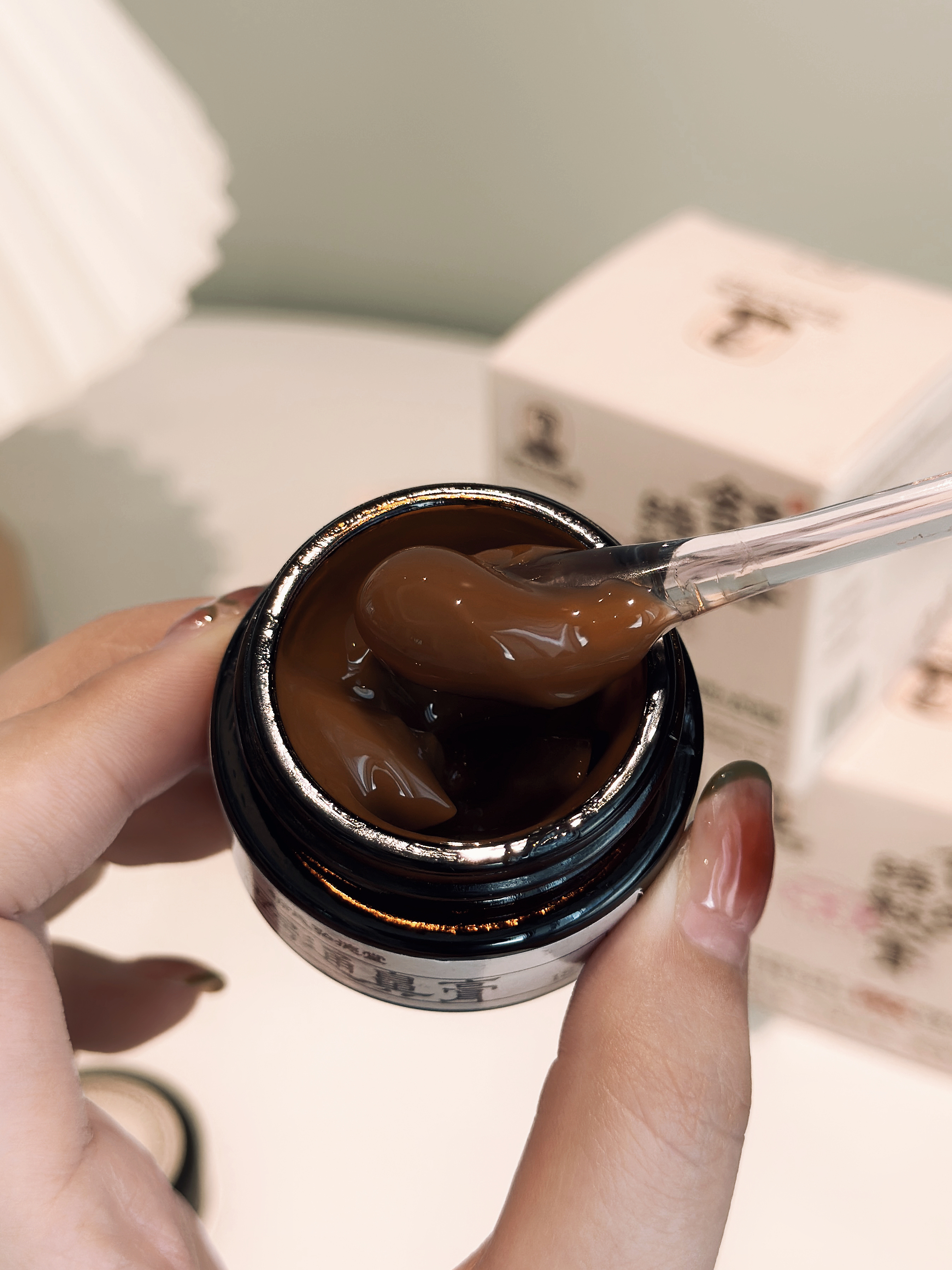 只需要用一根棉签,拧开盖子蘸一点儿