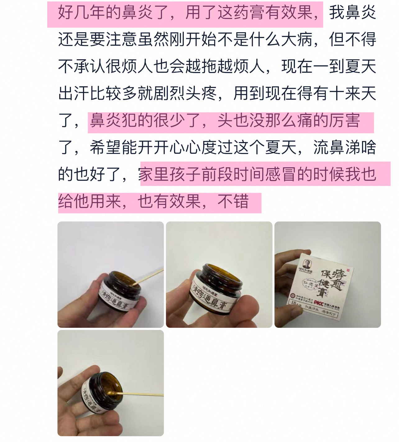 这个通鼻膏样品一到我就给小客服试用了