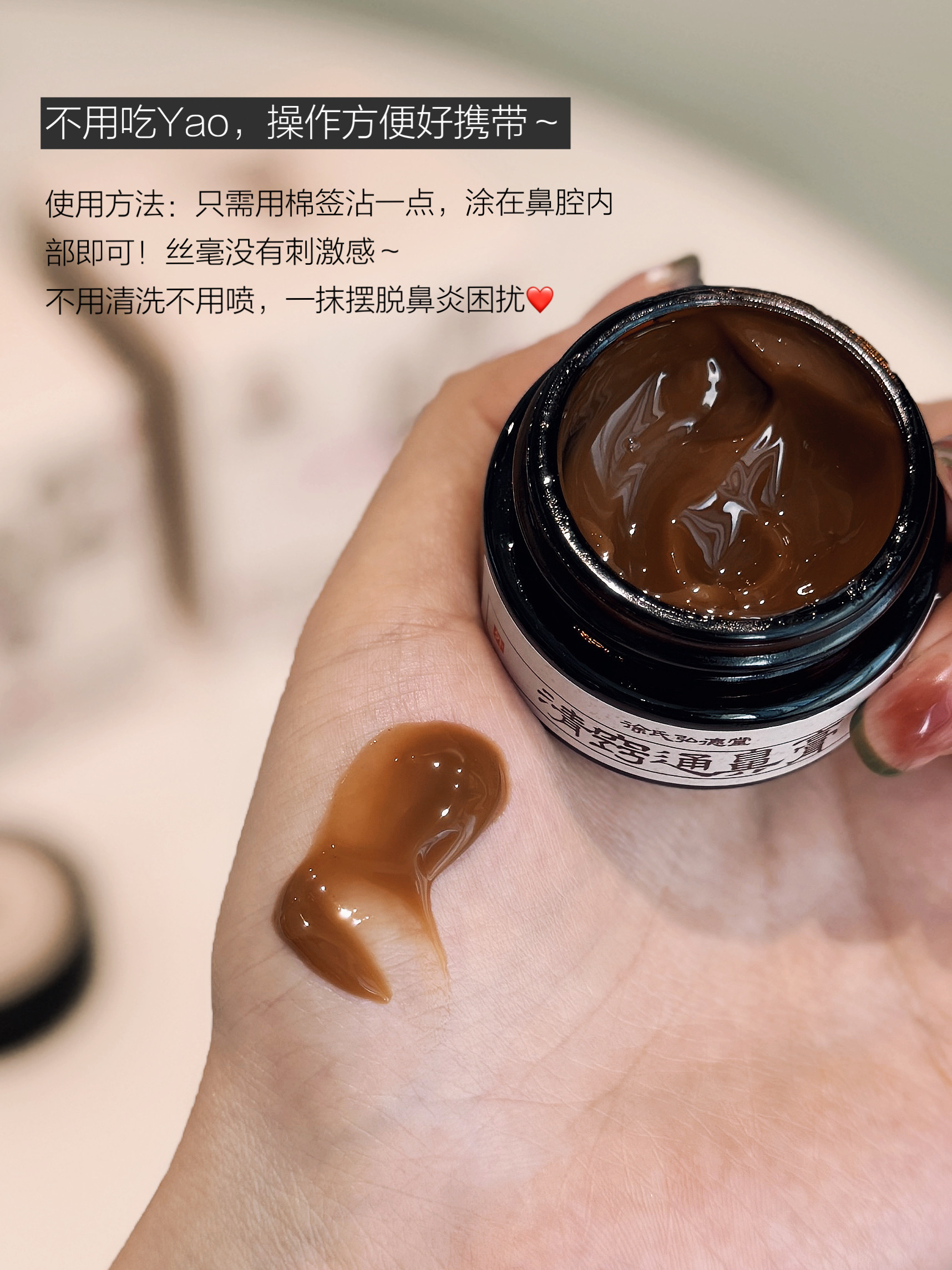 用棉签涂抹至鼻腔内,使用简单效果还不错!