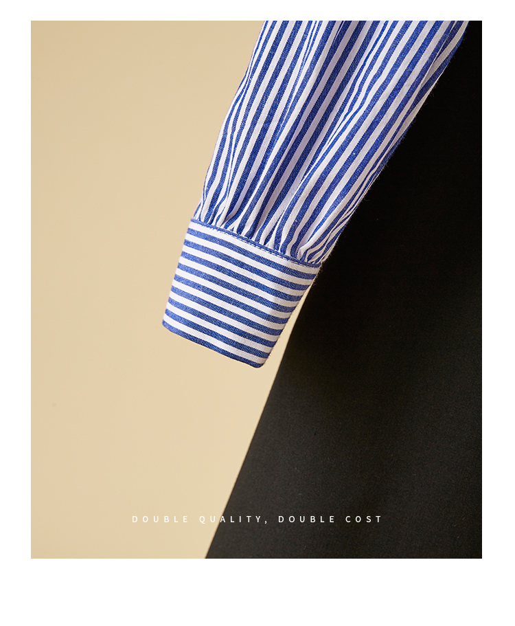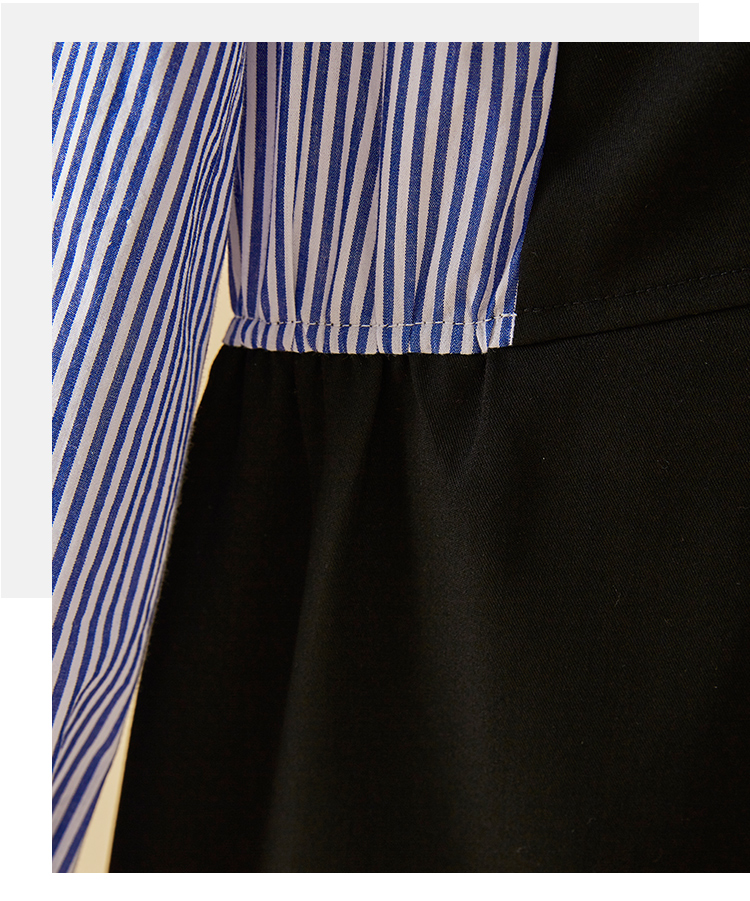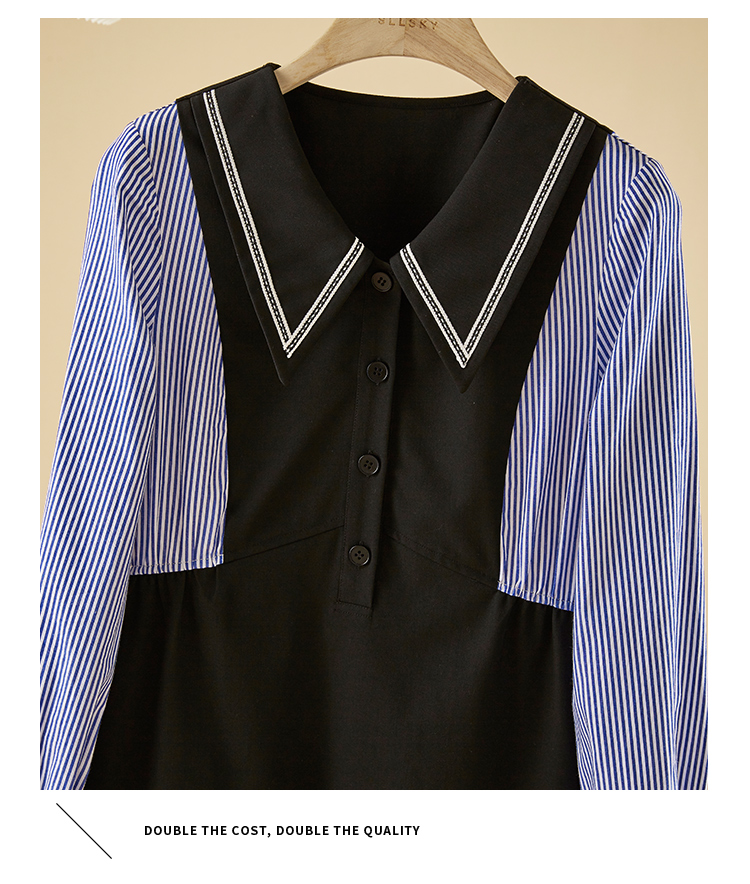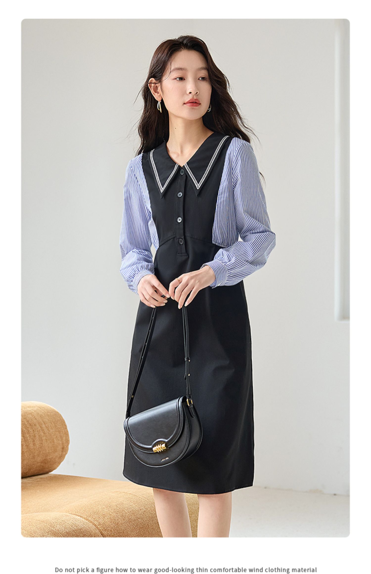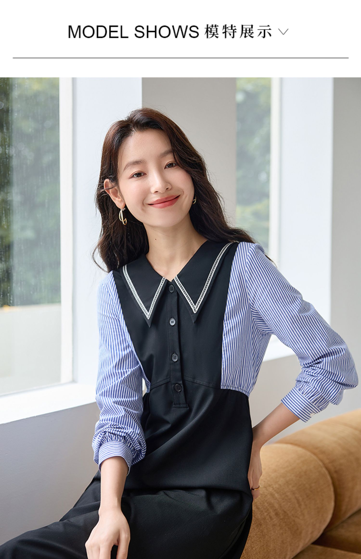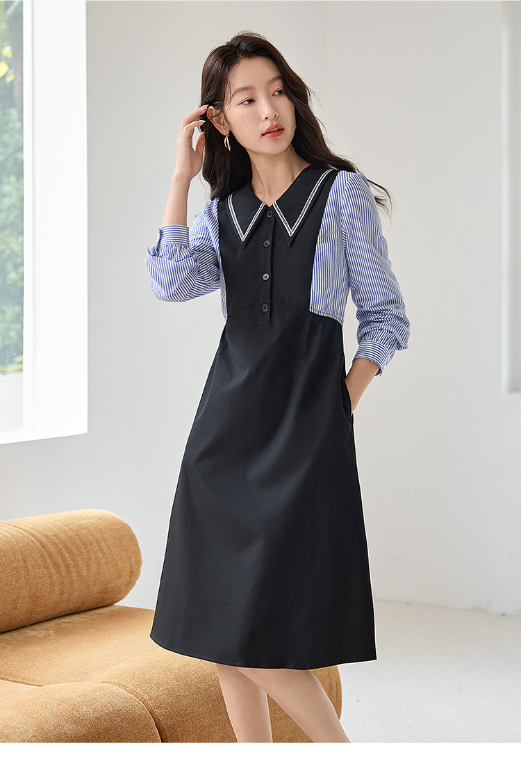 【年终特卖】熙世界设计感法式条纹长袖拼接翻领假两件连衣裙女2025秋季新款