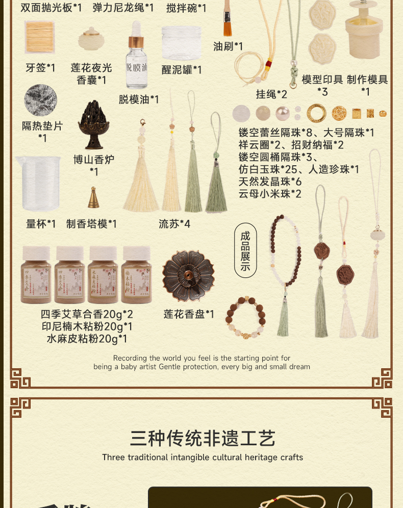 mobee非遗雅韵香饰手工diy串珠挂饰儿童玩具女孩首饰生日新年礼物