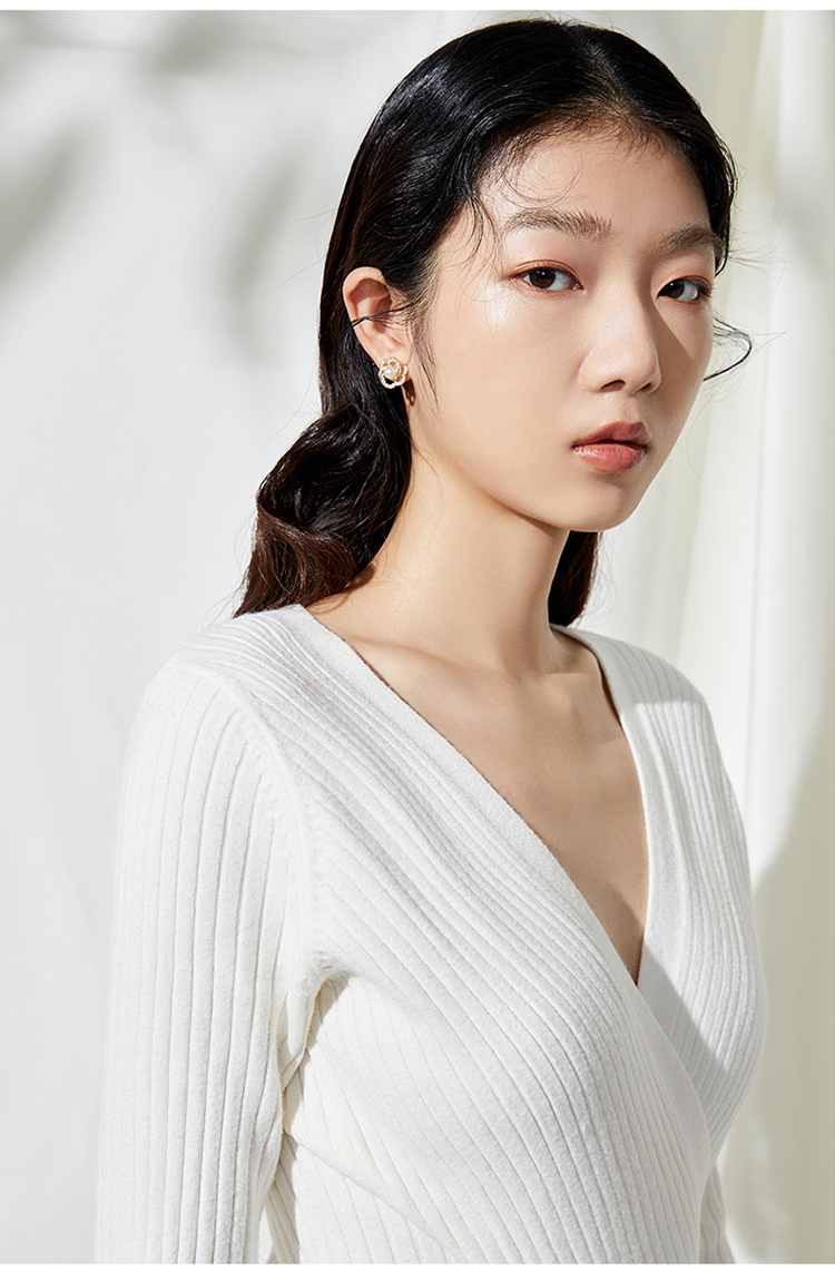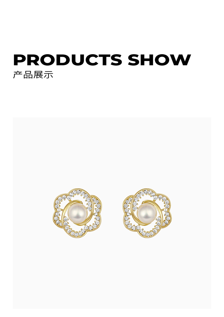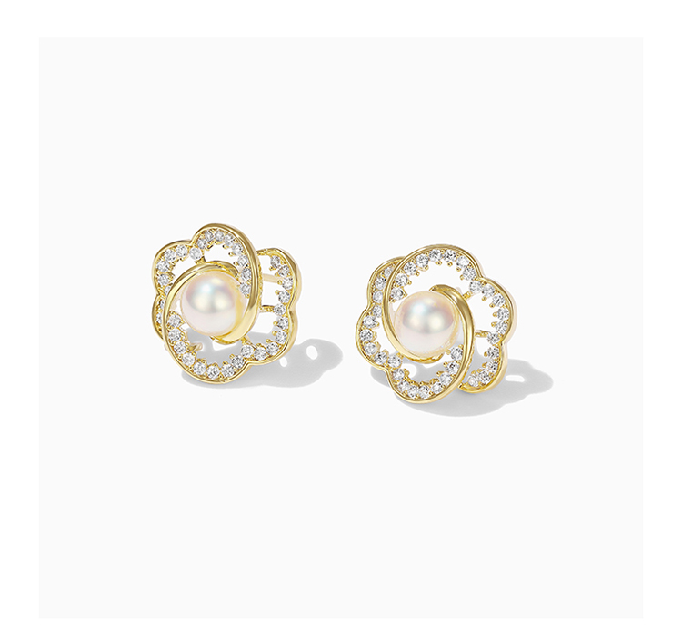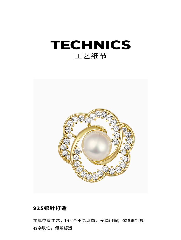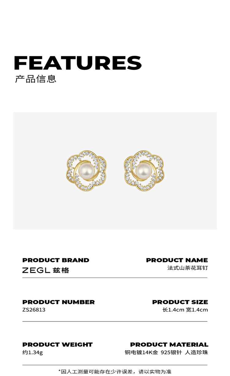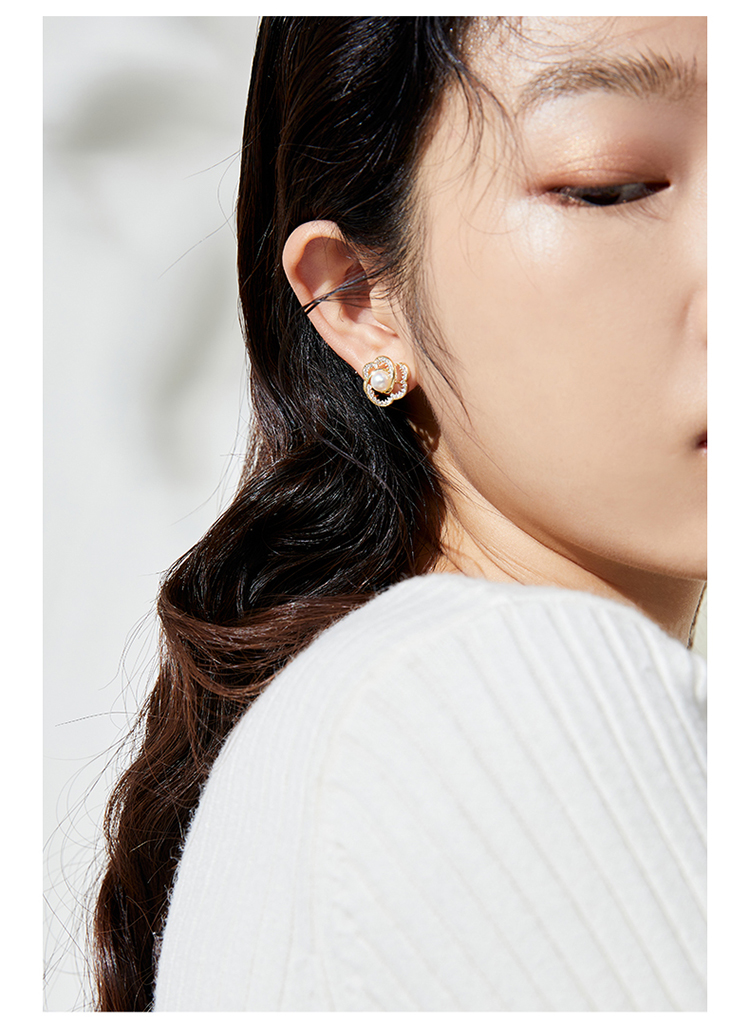 ZEGL山茶花耳环小众设计感高级人造珍珠耳钉复古925银针秋冬耳饰