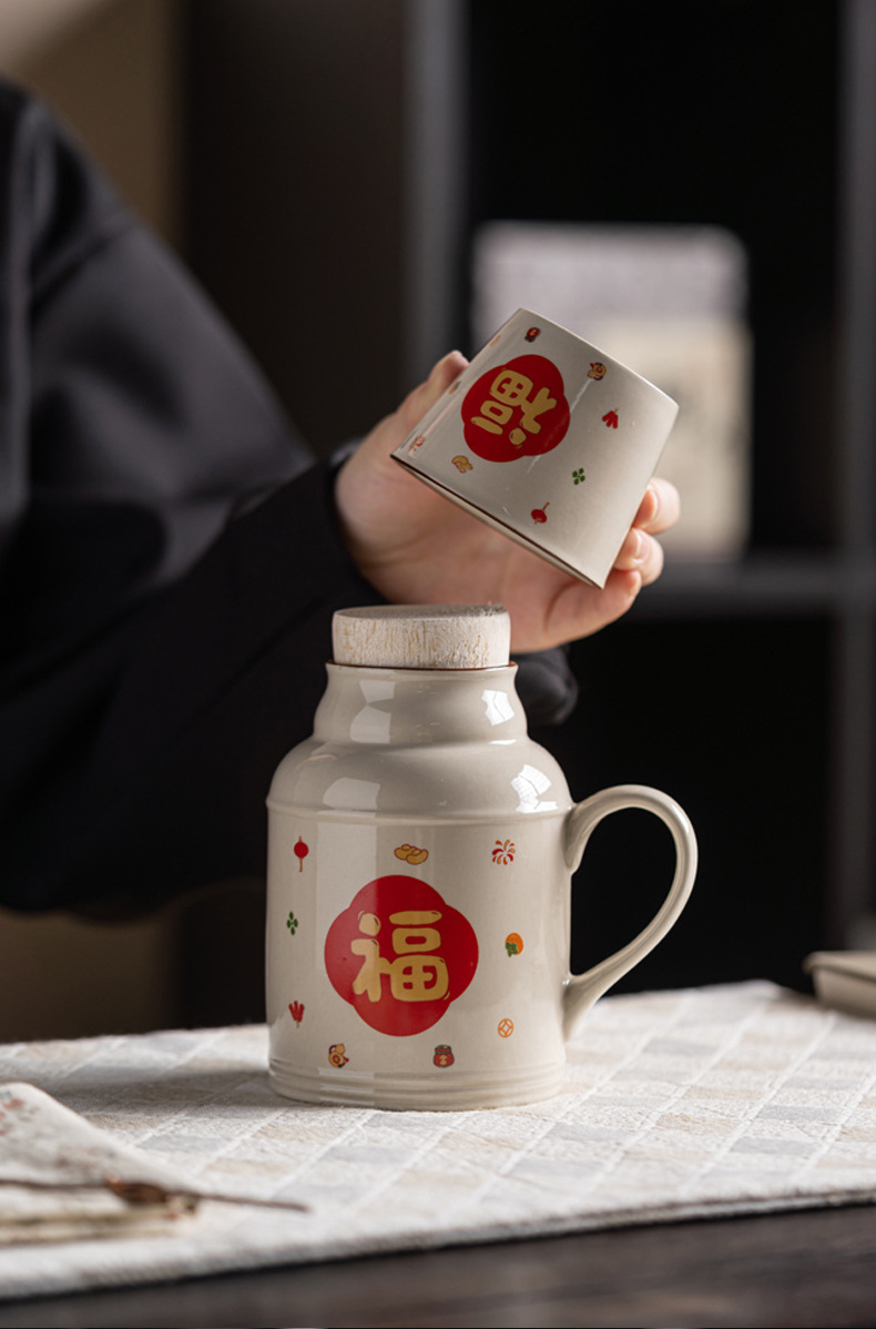 「小红书同款!数款可选」小暖壶家用带盖马克杯大容量陶瓷办公室焖泡茶壶茶杯餐饮用具礼盒装