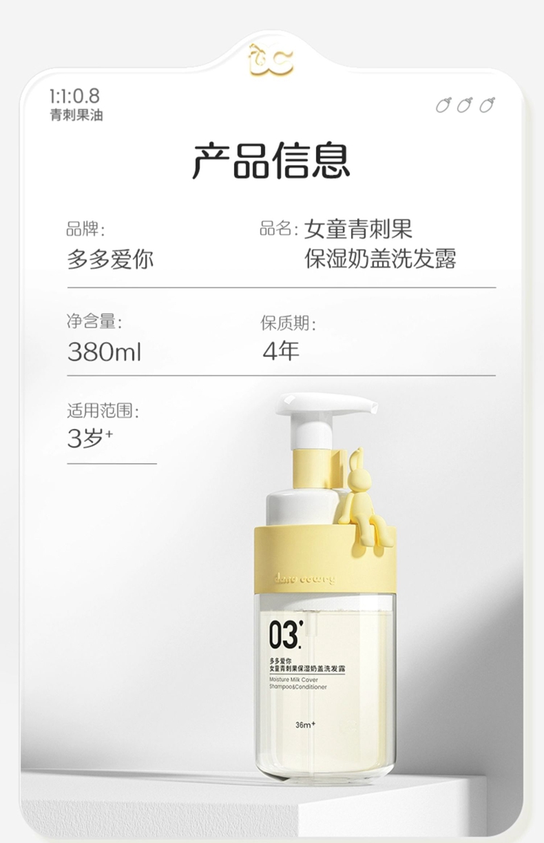 26年5月【兑换】多多爱你 女童保湿奶盖洗发露 380ml