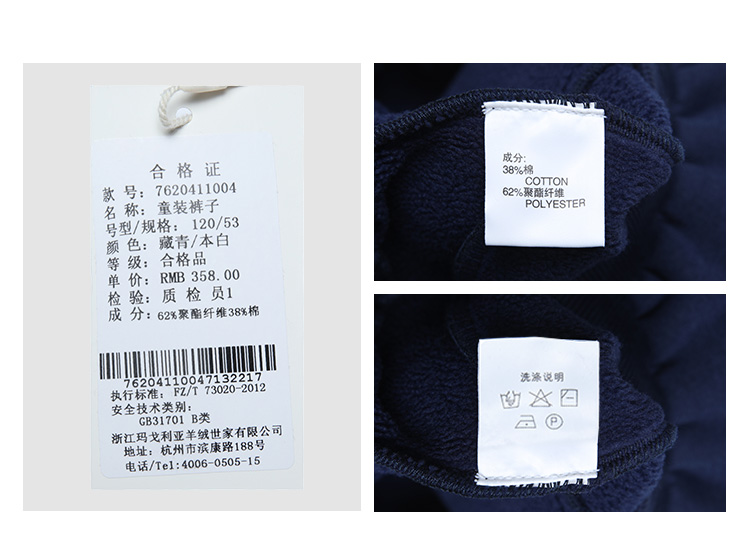 | 安全等级: B类 | 材质成分: 聚酯纤维62% 棉38% |