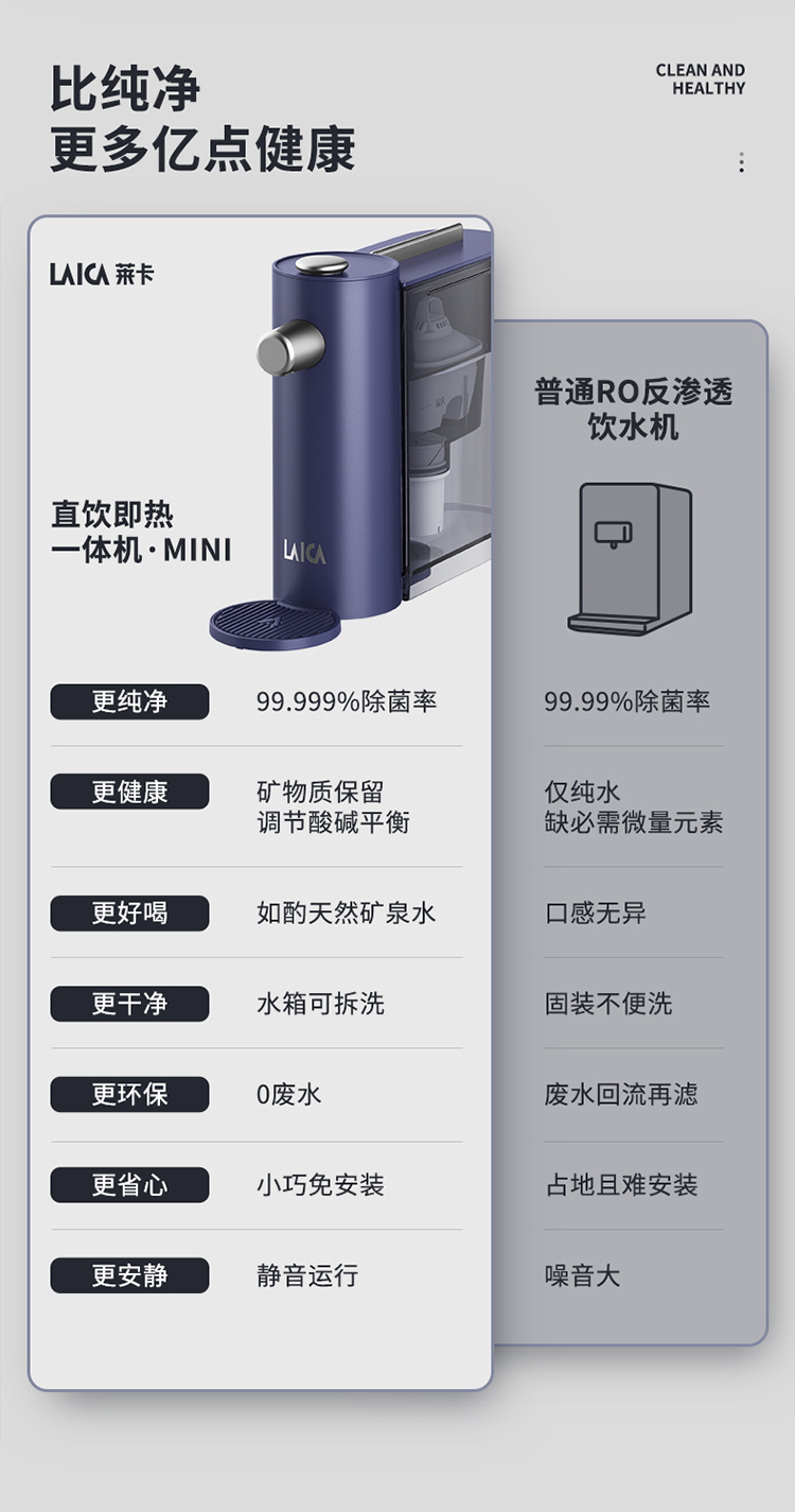 Laica莱卡直饮即热式饮水机家用迷你台式净水器过滤煮茶器