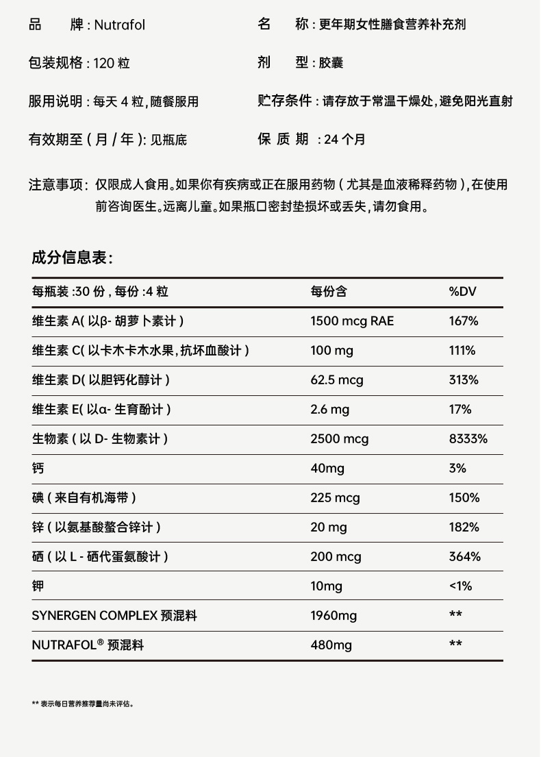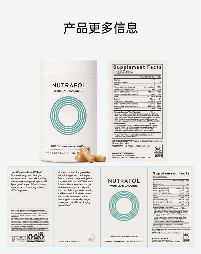 保税直发 NUTRAFOL 更年期女性膳食营养补充剂 120粒/瓶 1瓶装/3瓶装/6瓶装