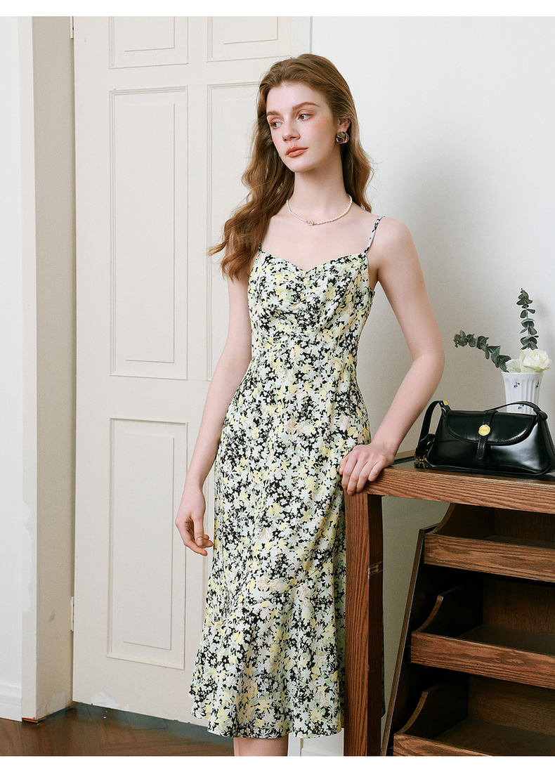 【商场同款】诗凡黎度假风碎花连衣裙2025夏新款吊带裙3G4190361