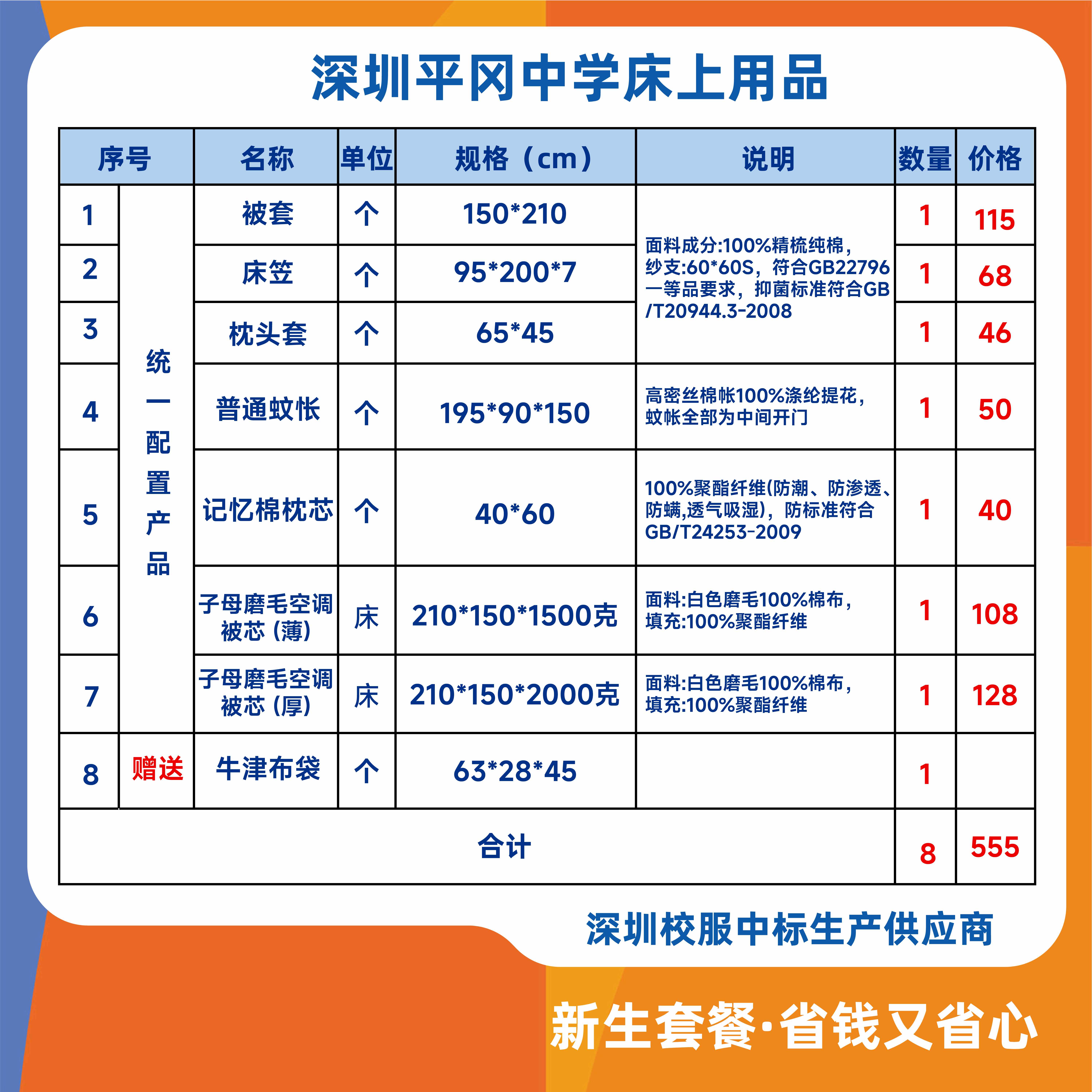 2025深圳平冈中学床上用品