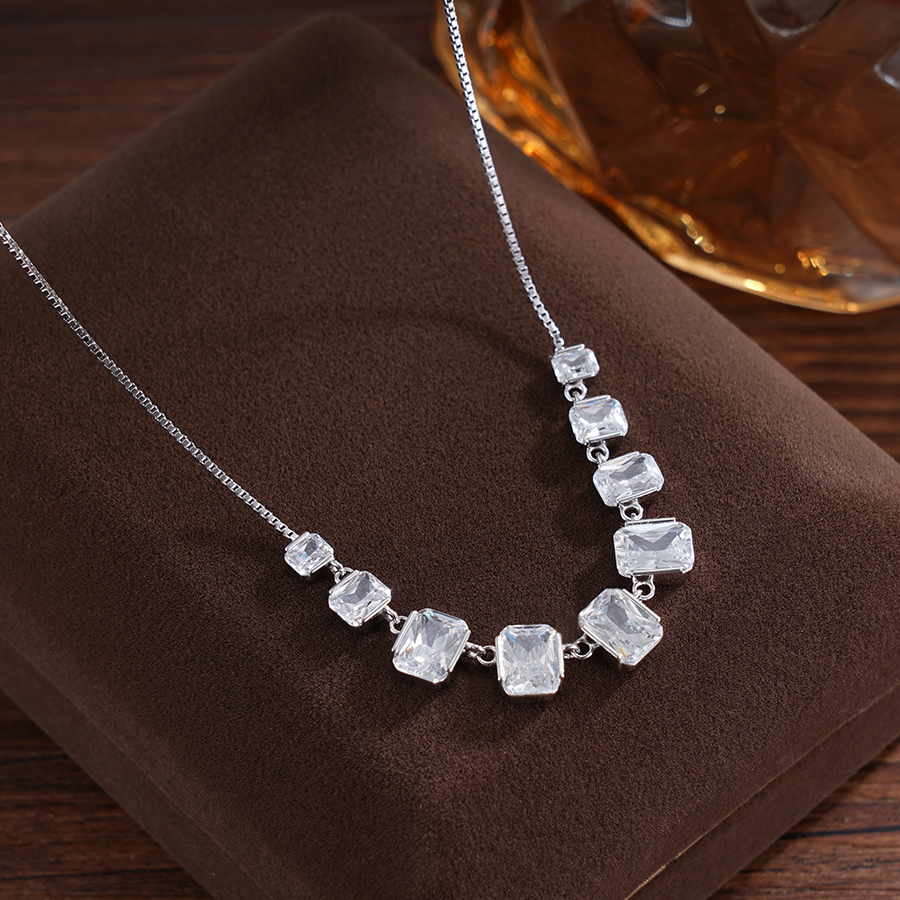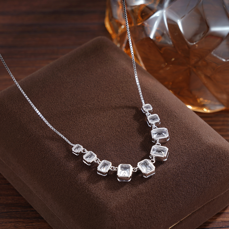 【寓意】:项链纯银材质,经抛光工艺处理,镶嵌大小不一的锆石,层层铺叠,宛如水波荡起涟漪,流光溢彩。