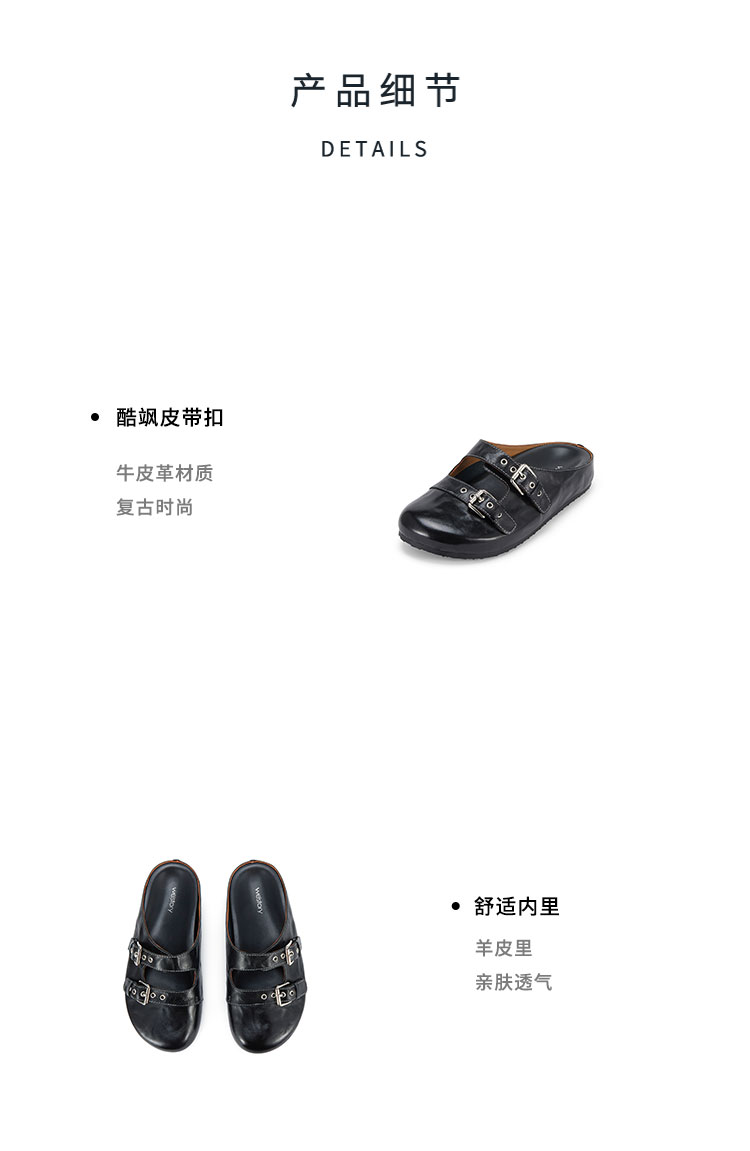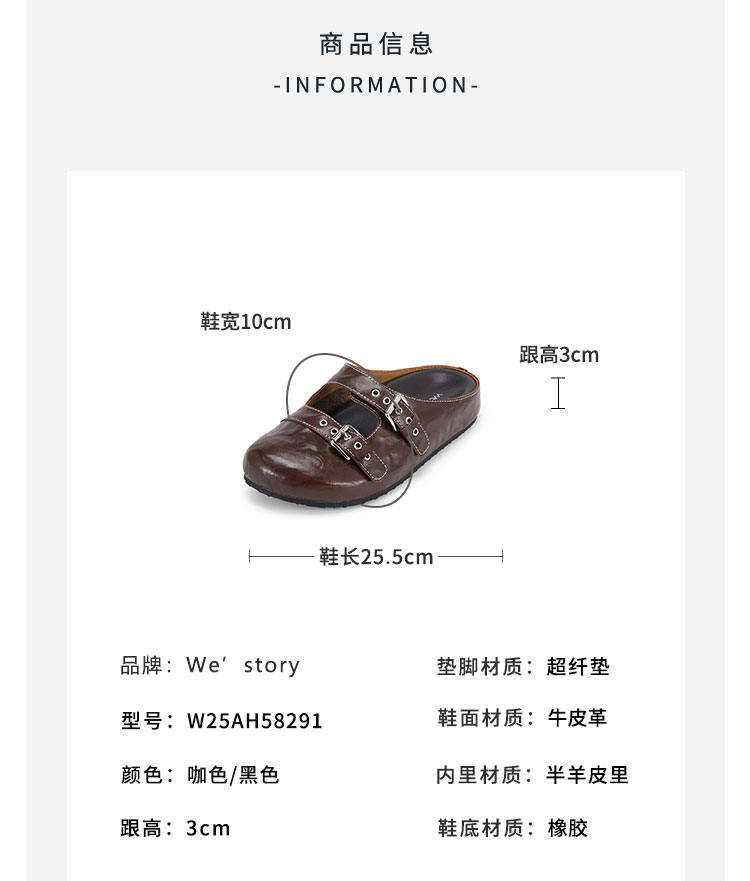 Westory2025年春季平底休闲勃肯半拖双扣带后空拖鞋W25AH58291