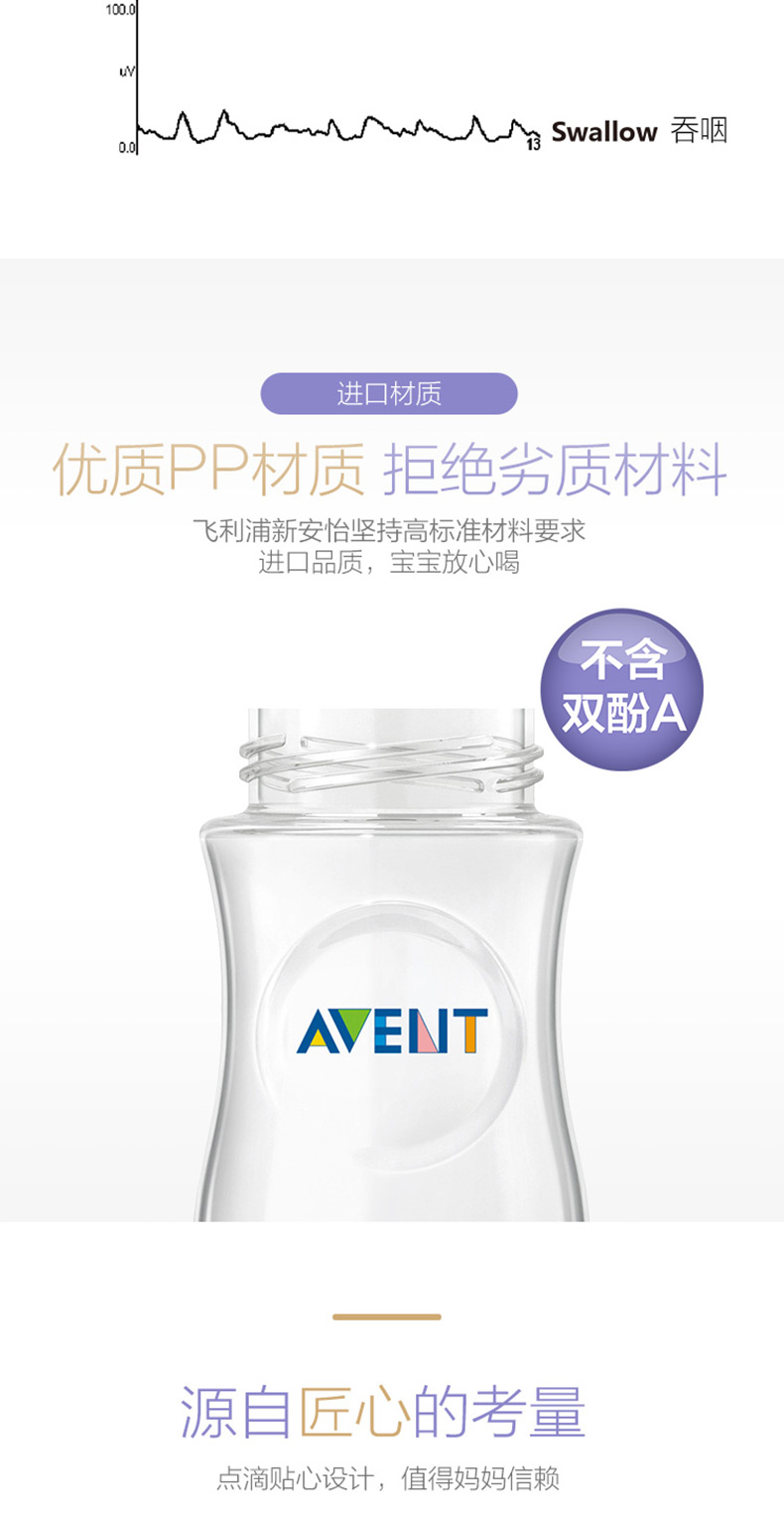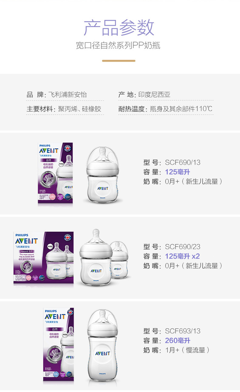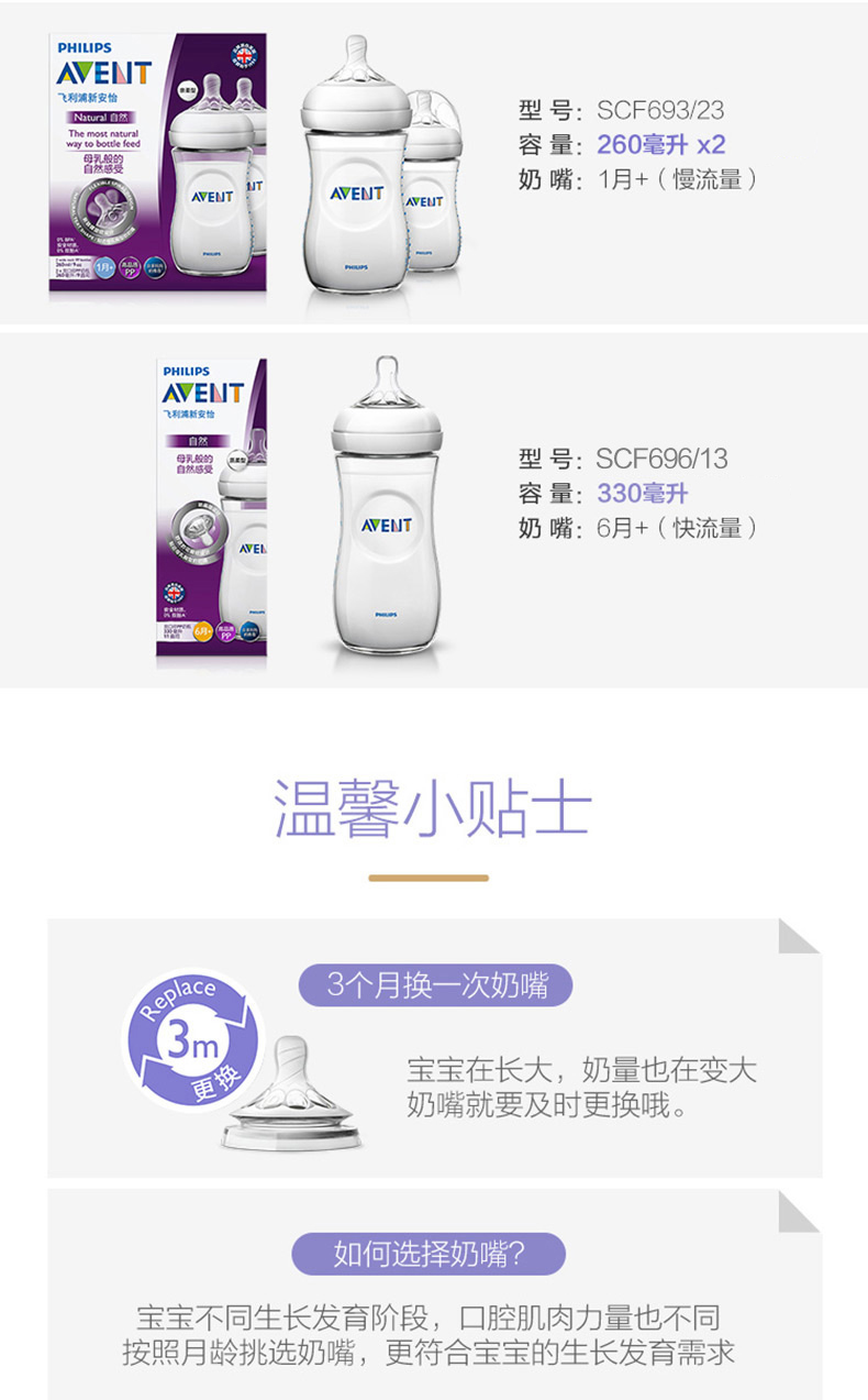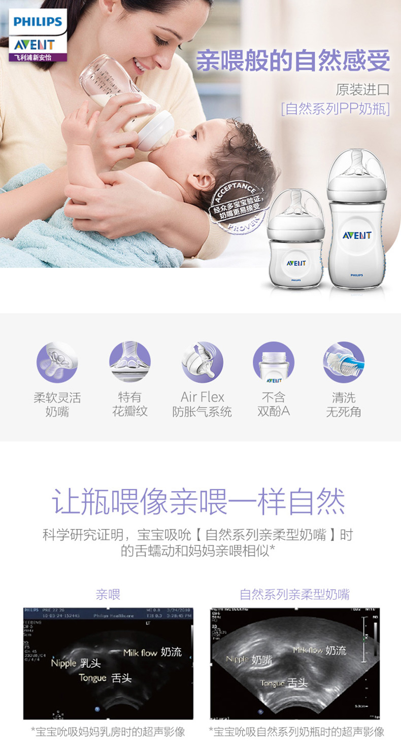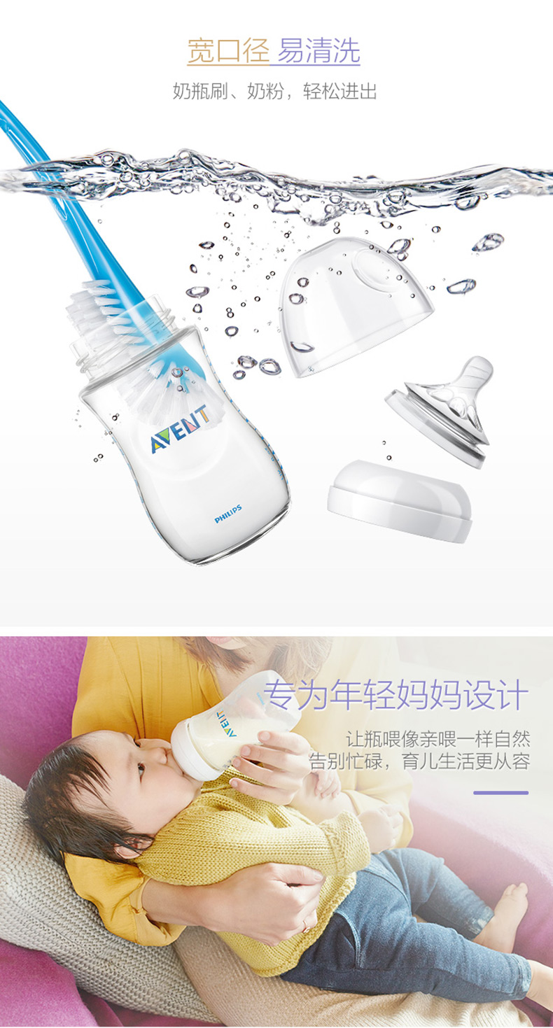 新安怡婴儿宽口PP奶瓶260毫升配1月+奶嘴仿母乳自然实感SCF693/13