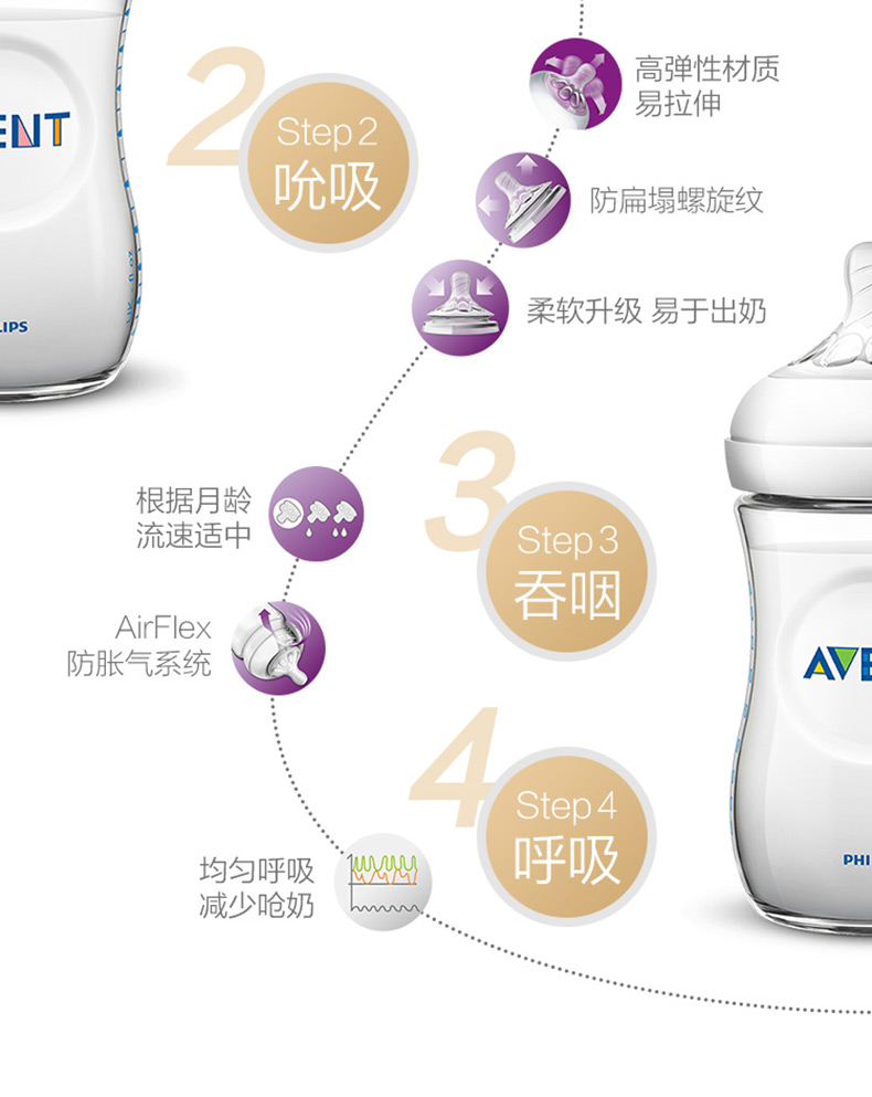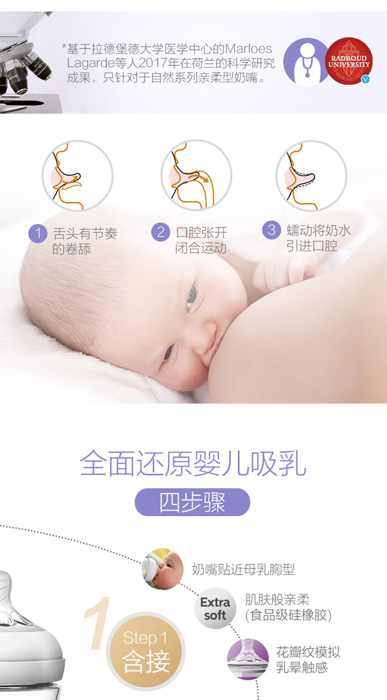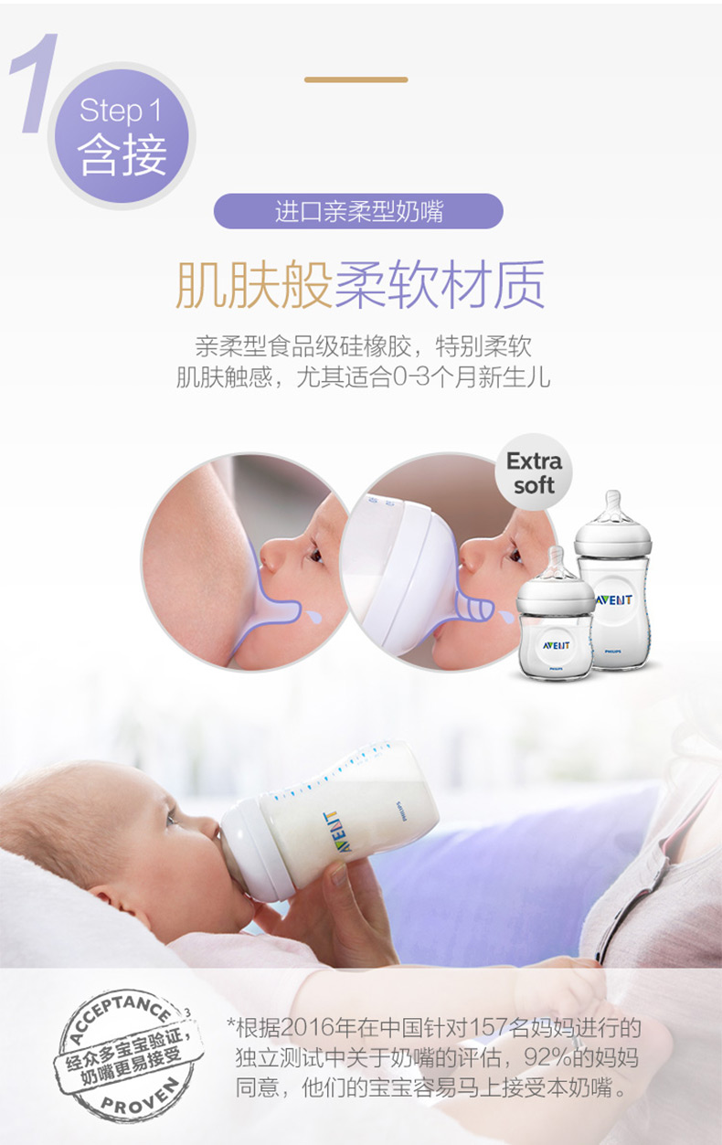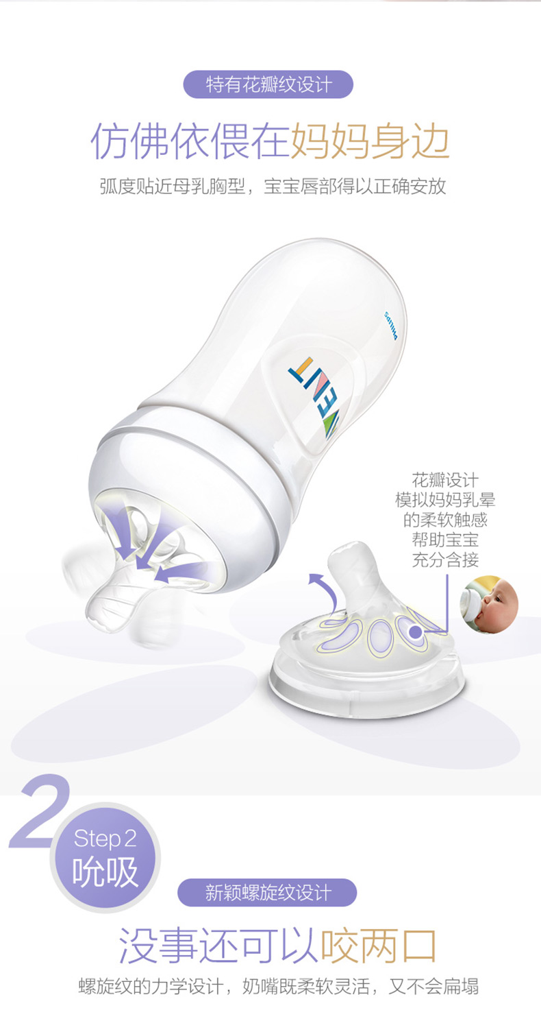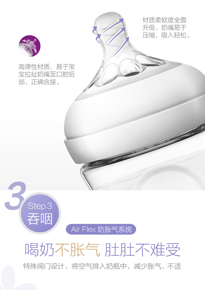 新安怡婴儿宽口PP奶瓶260毫升配1月+奶嘴仿母乳自然实感SCF693/13