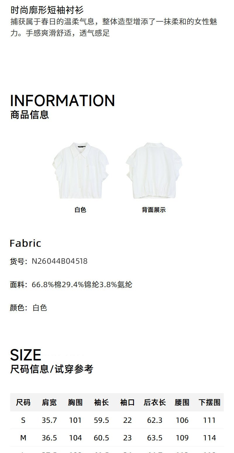 NEELLY纳俪商场同款夏季新款时尚简约白衬衫女百搭透气感舒适上衣N26044B04518