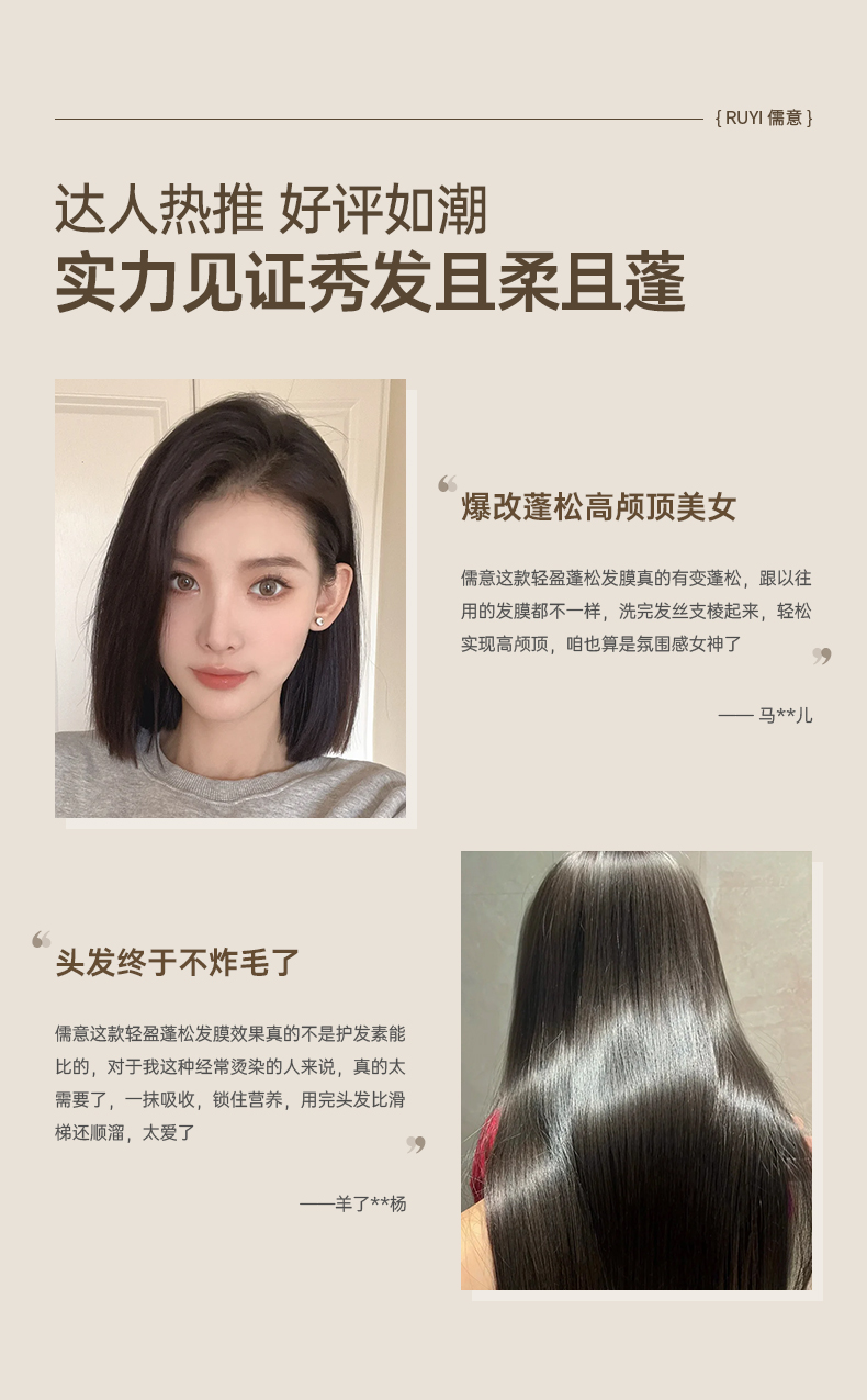 儒意轻盈蓬松发膜250g 蓬松发膜修复干枯补水顺滑免蒸水疗营养角蛋白矫正护发素|儒意官方商城