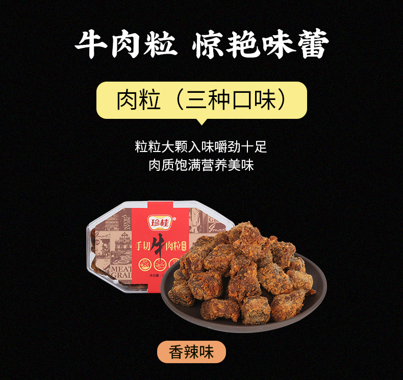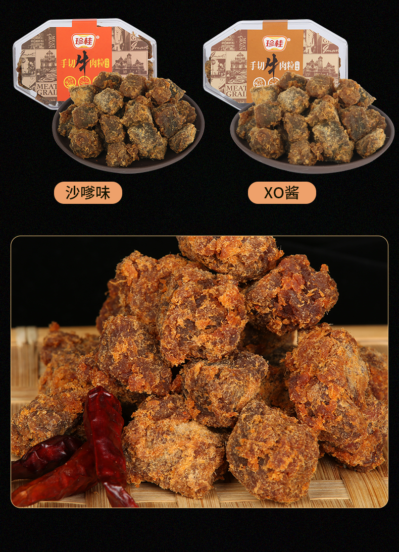 珍桂盒装牛肉粒200g 香辣味/沙嗲味/XO酱味 粒粒大颗 入味嚼劲十足 050046/052556/052557