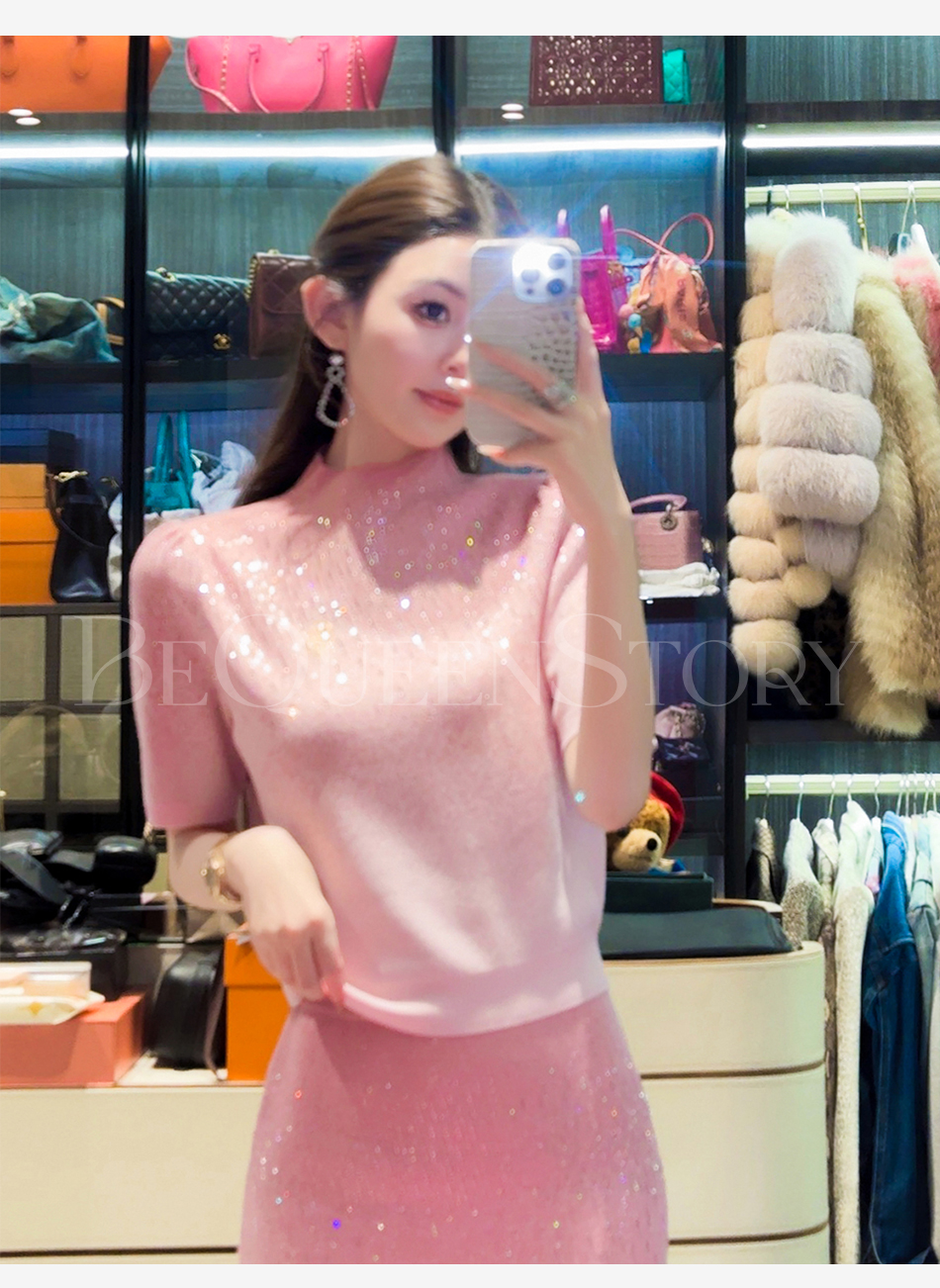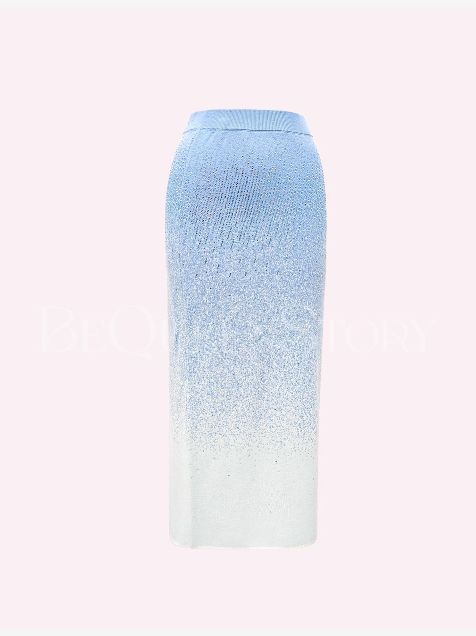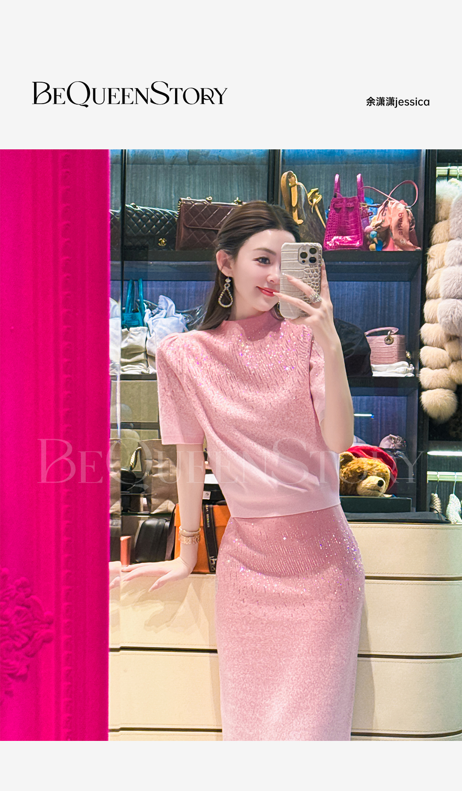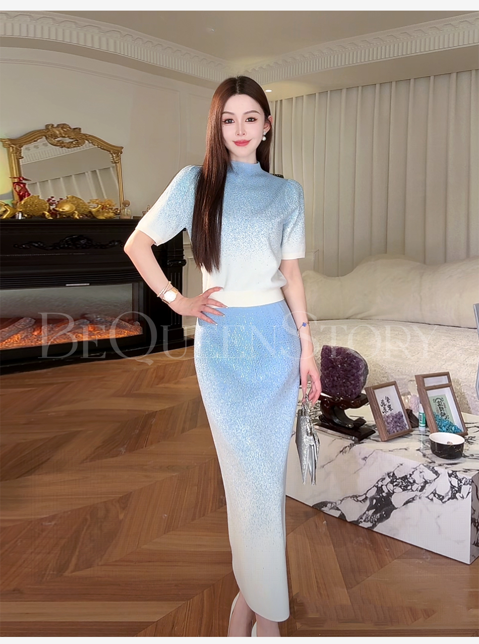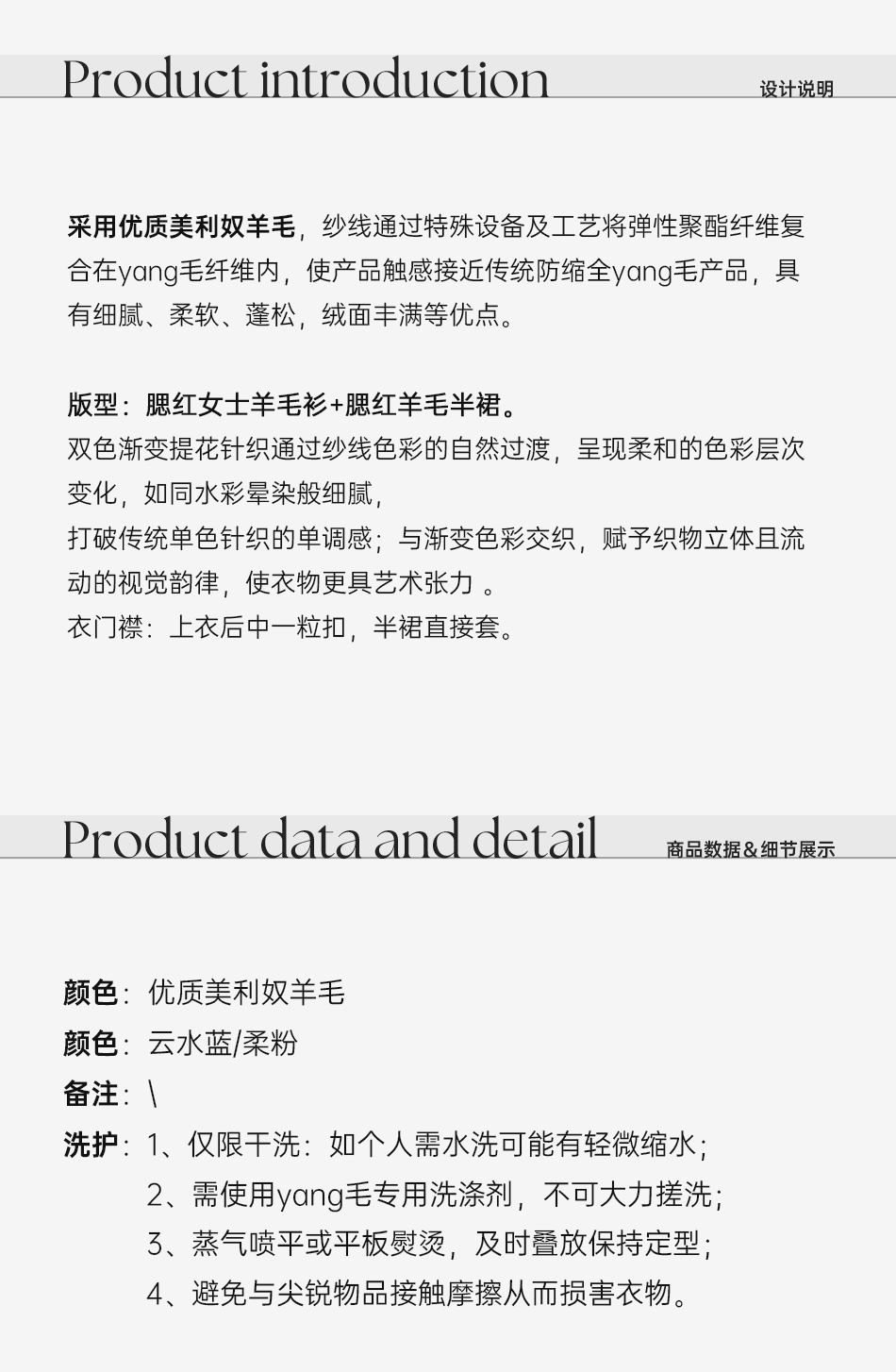 余潇潇【欧若星光】时髦双色渐变提花针织羊毛衫&层次感羊毛半裙女