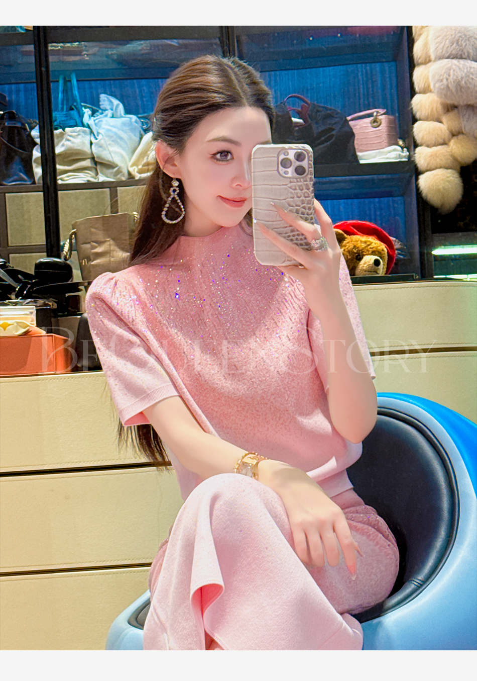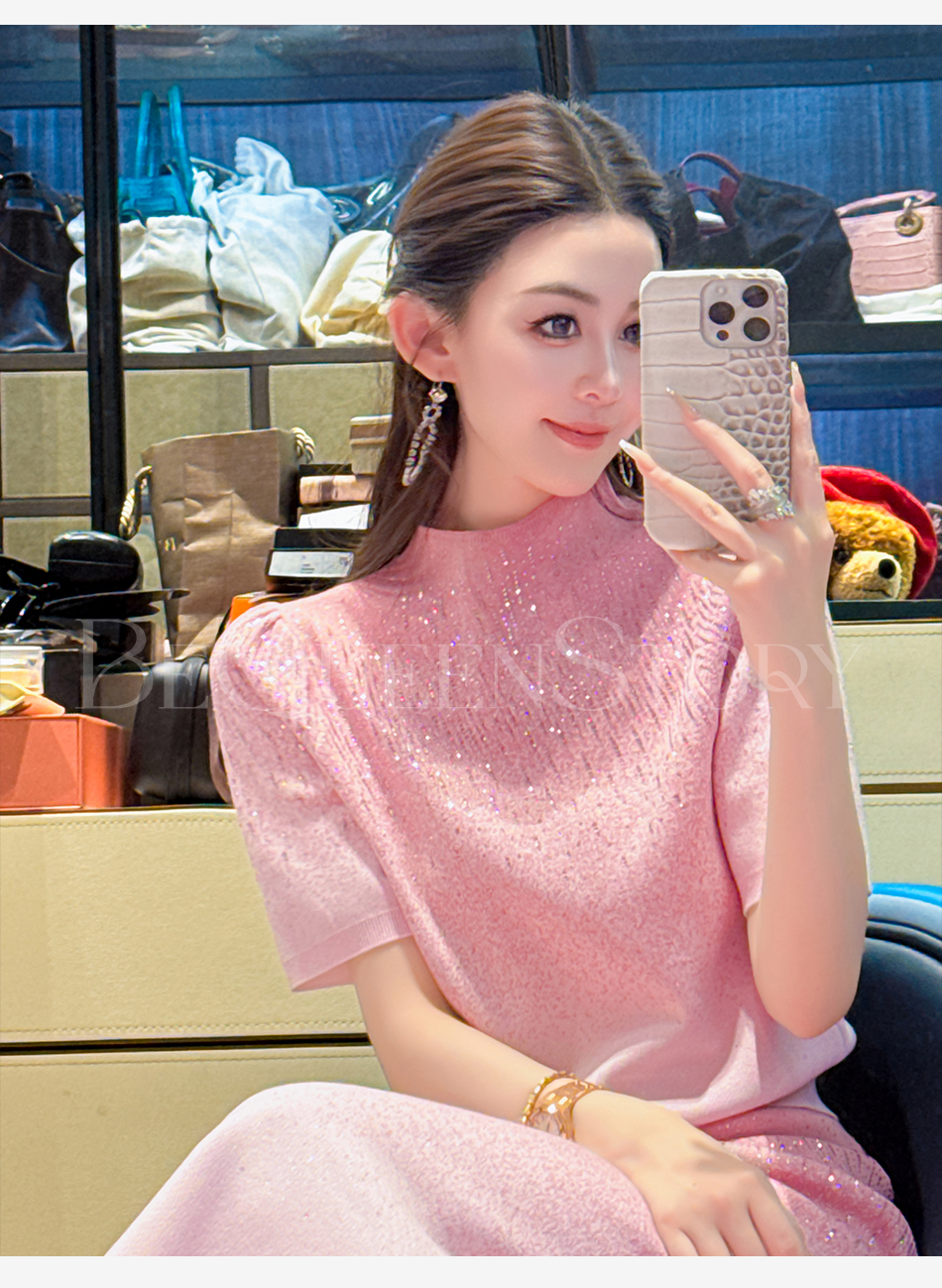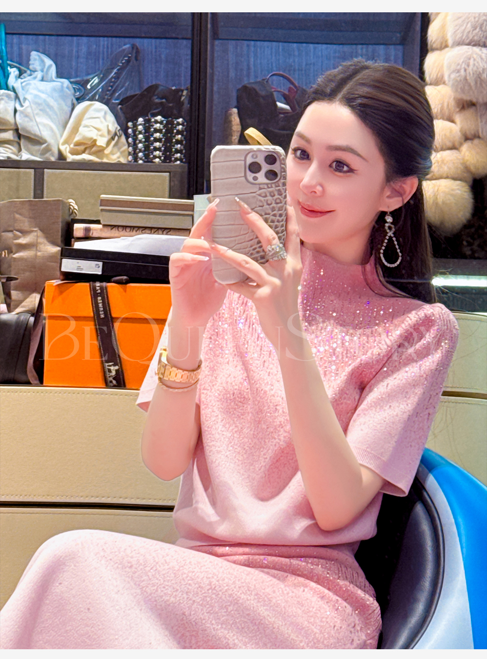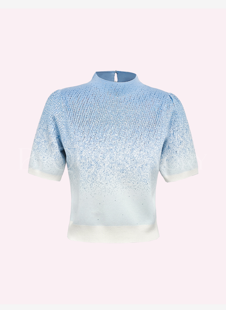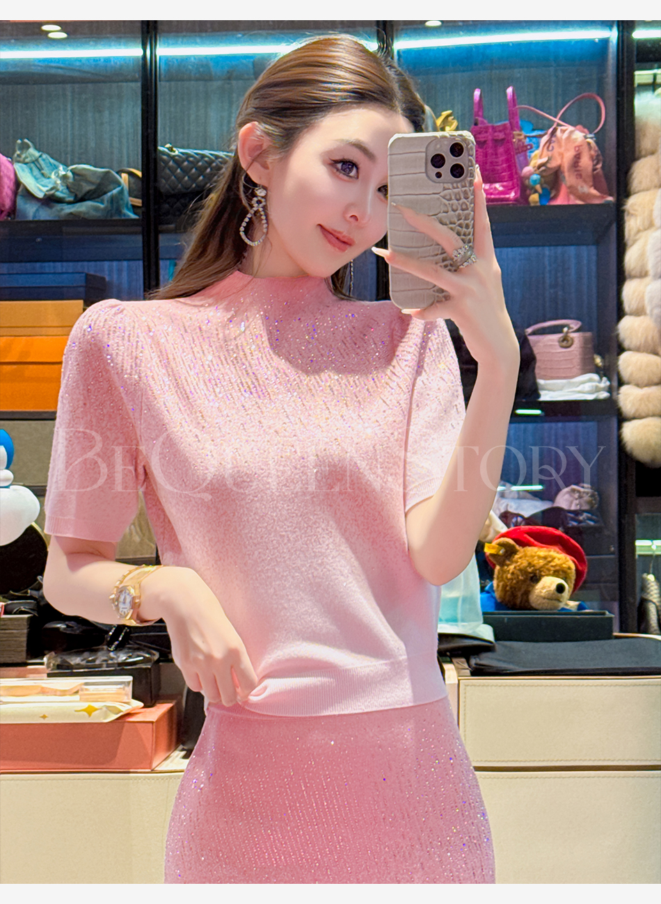 余潇潇【欧若星光】时髦双色渐变提花针织羊毛衫&层次感羊毛半裙女
