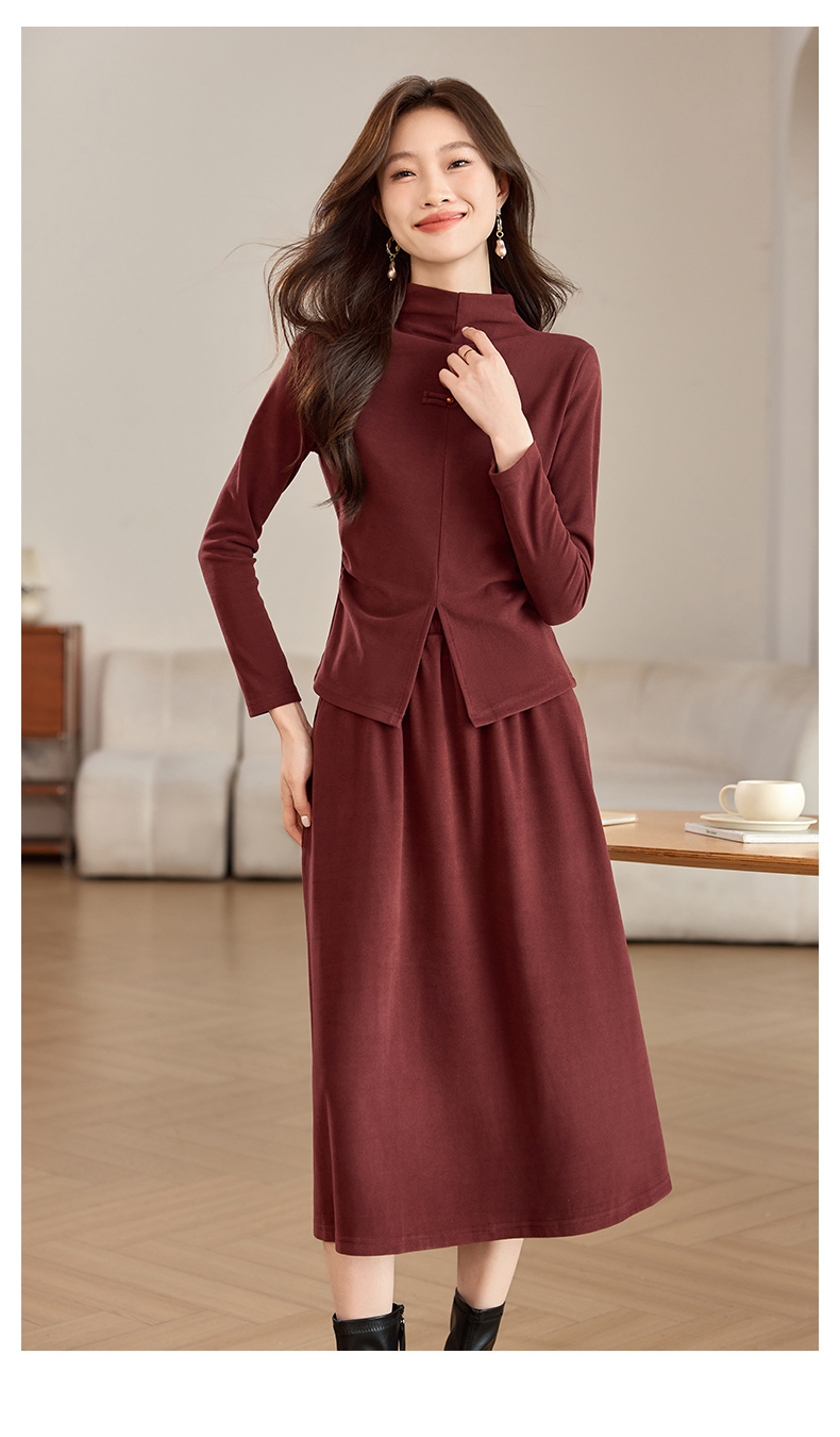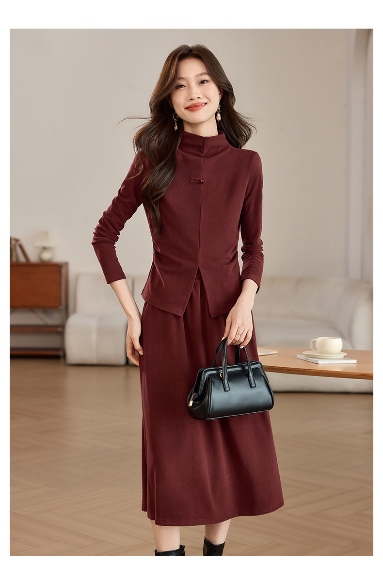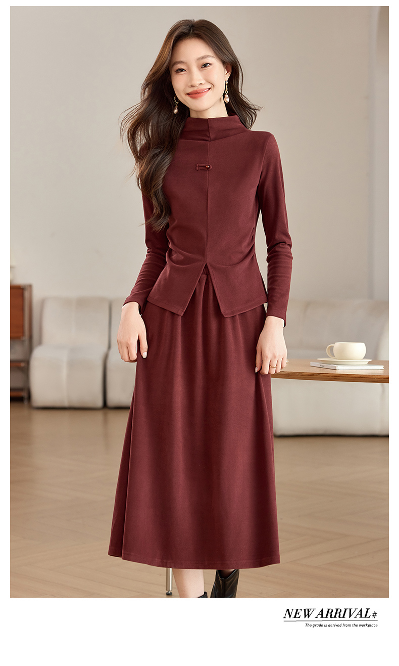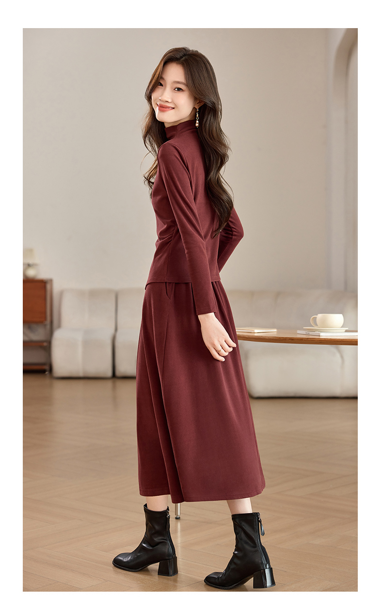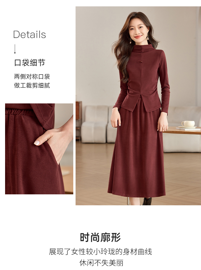磨毛加厚气质时尚,立领上衣配半裙两件套裙HR-SSFB039