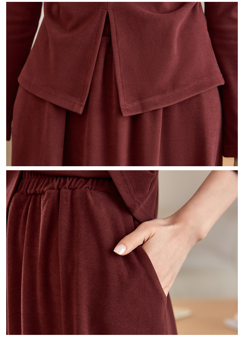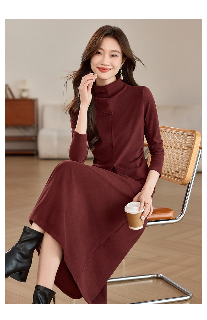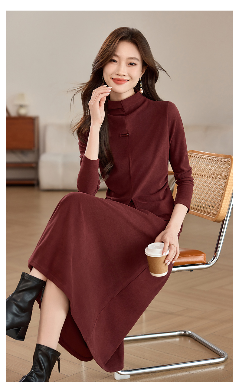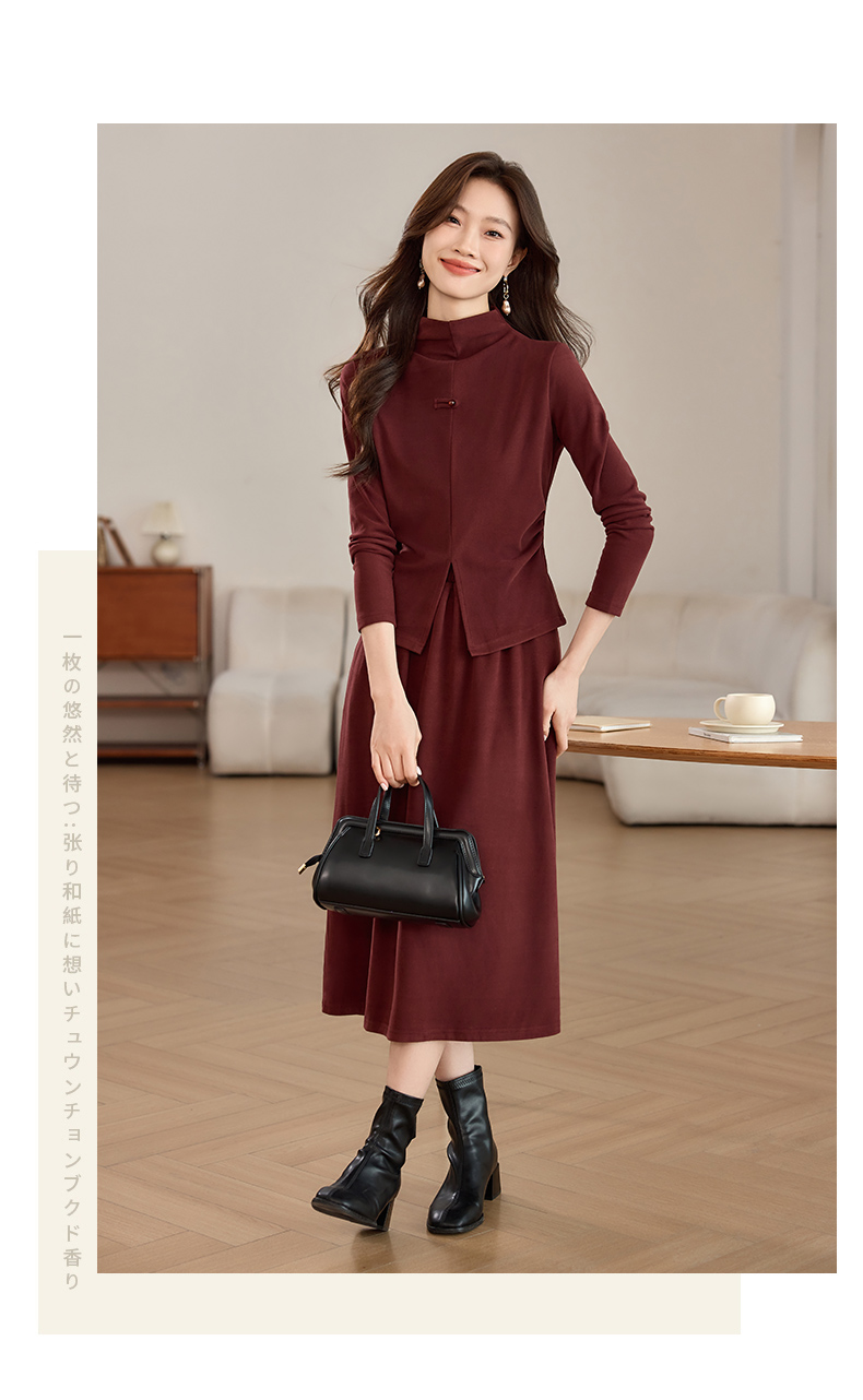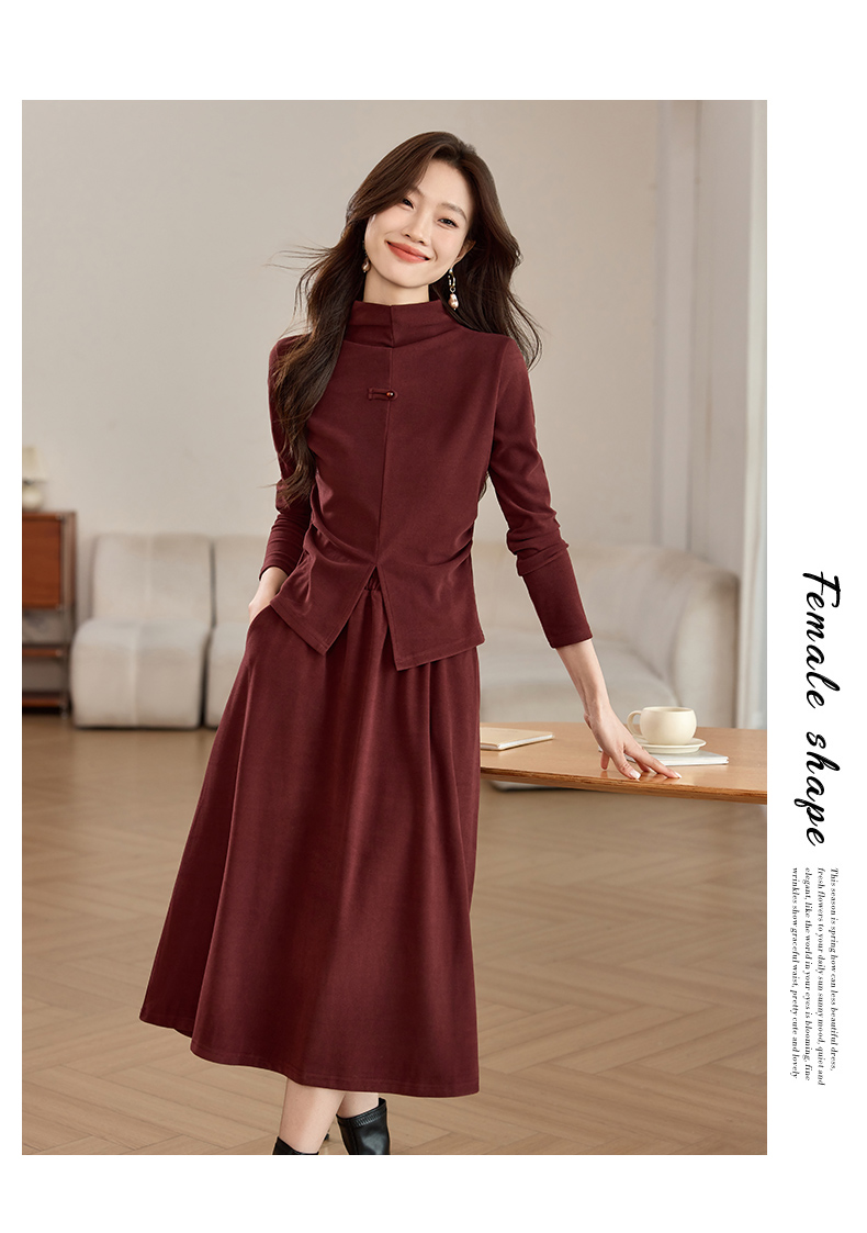磨毛加厚气质时尚,立领上衣配半裙两件套裙HR-SSFB039