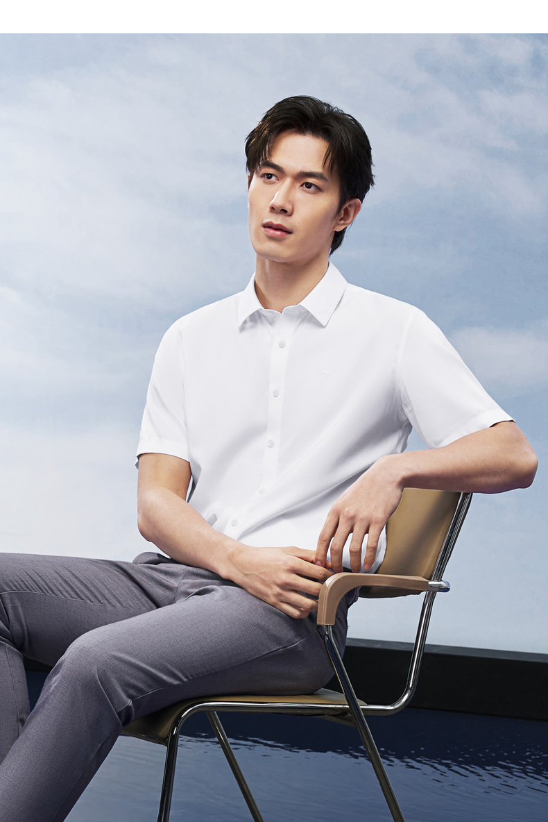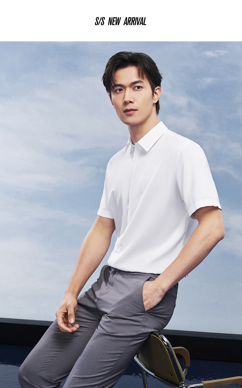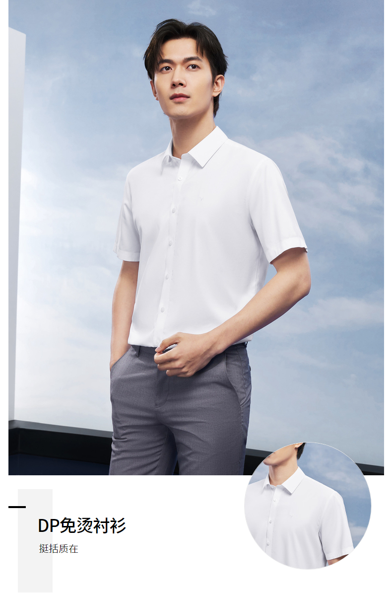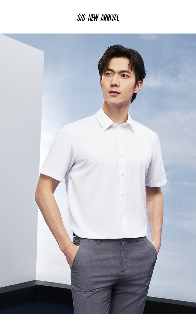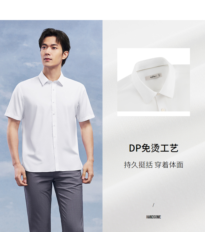 【DP免烫】柒牌男士商务短袖衬衫2026夏季新款上班休闲翻领衬衣 130A70820