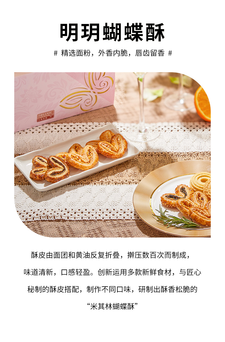 明玥皇廷礼盒装原味蝴蝶酥176g/051498 口感松脆香浓美味色泽金黄