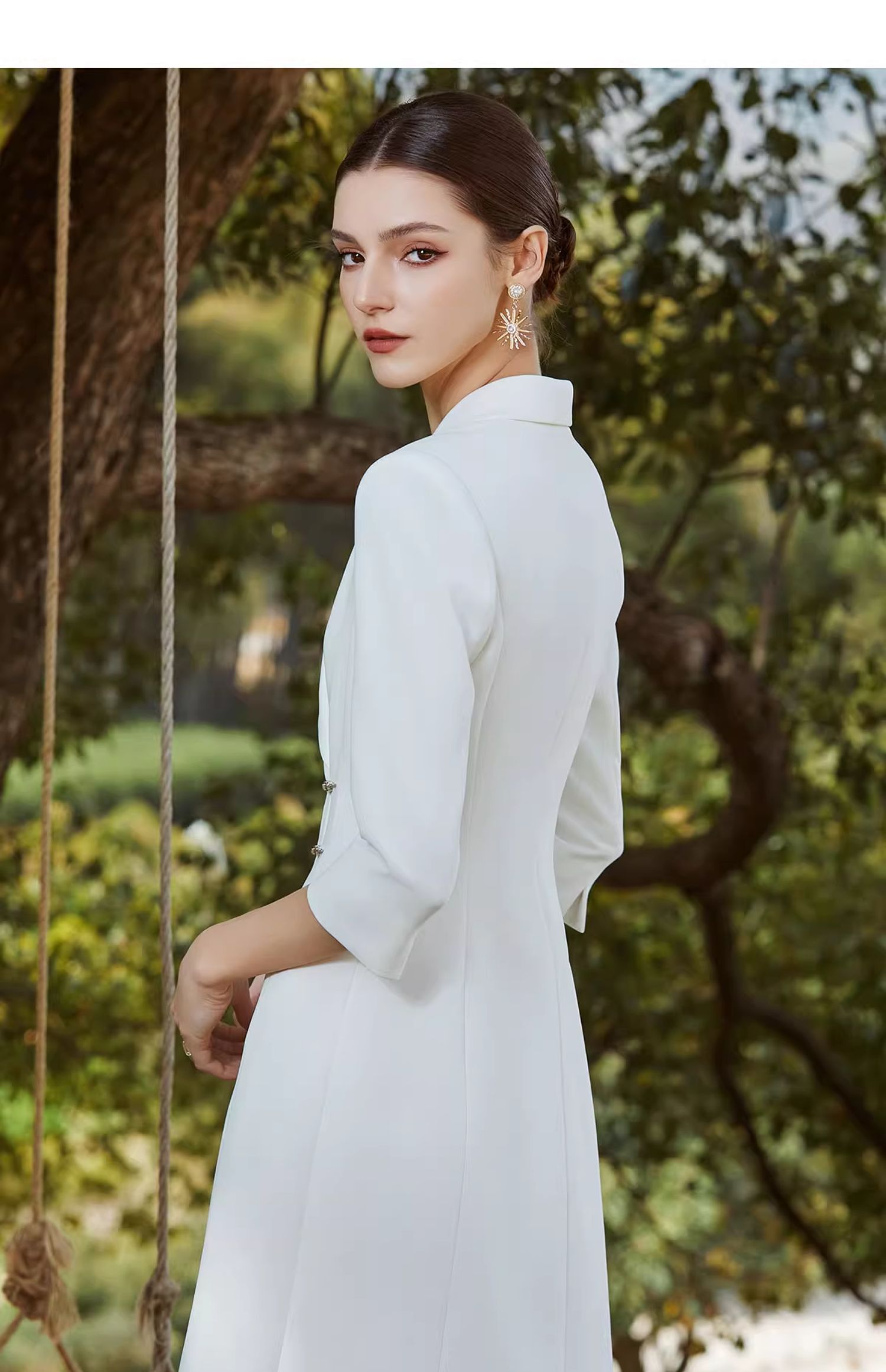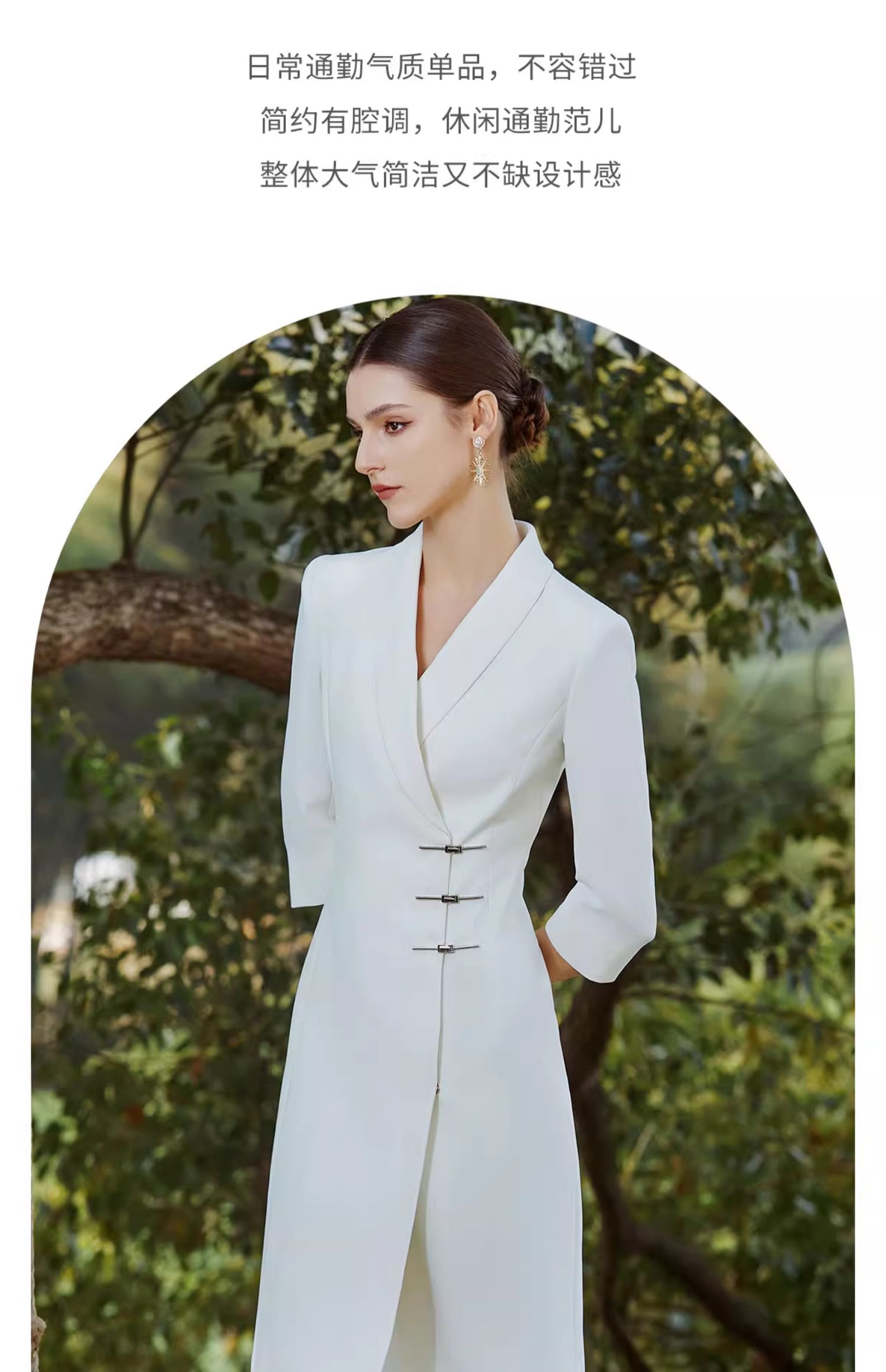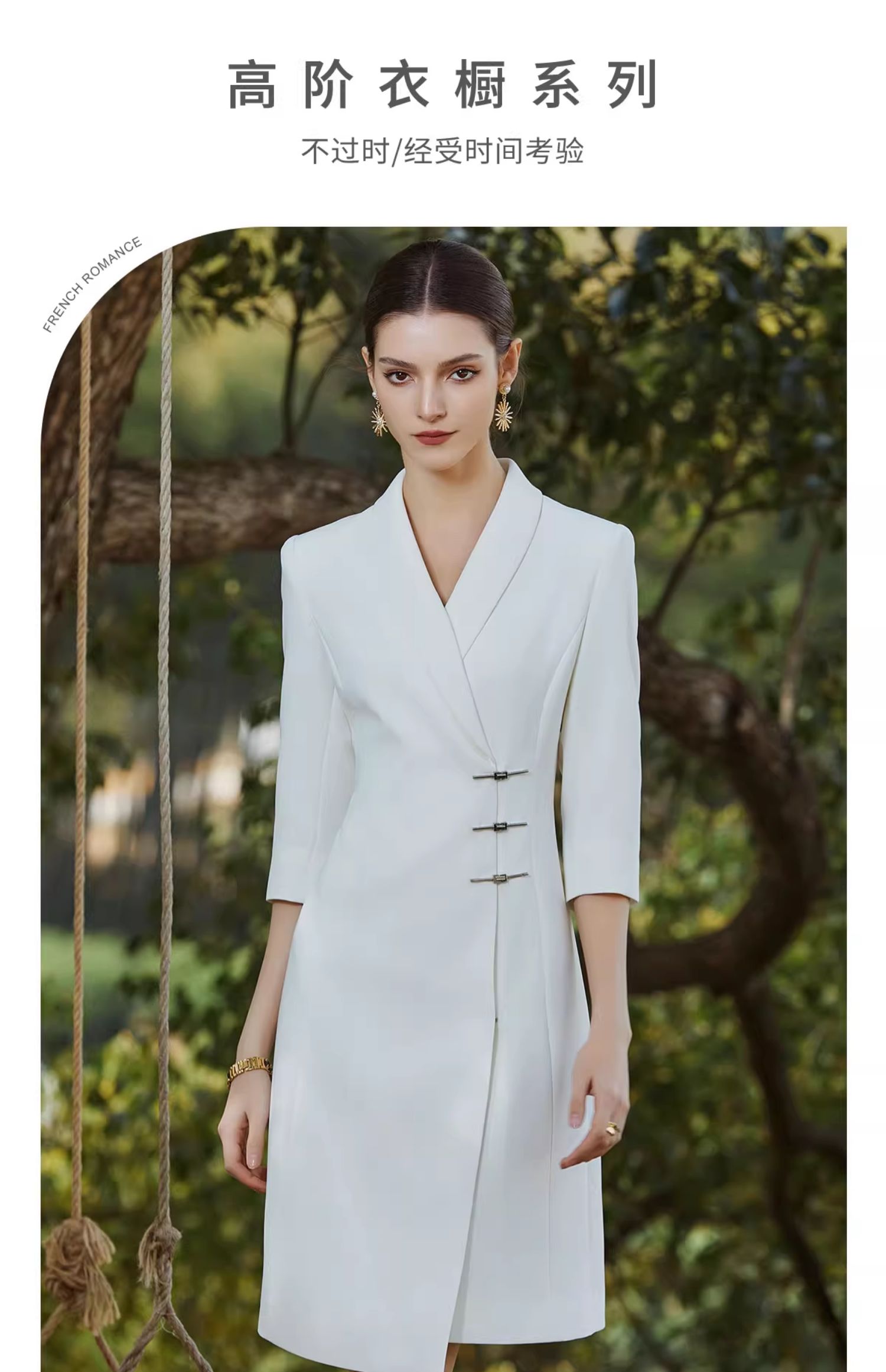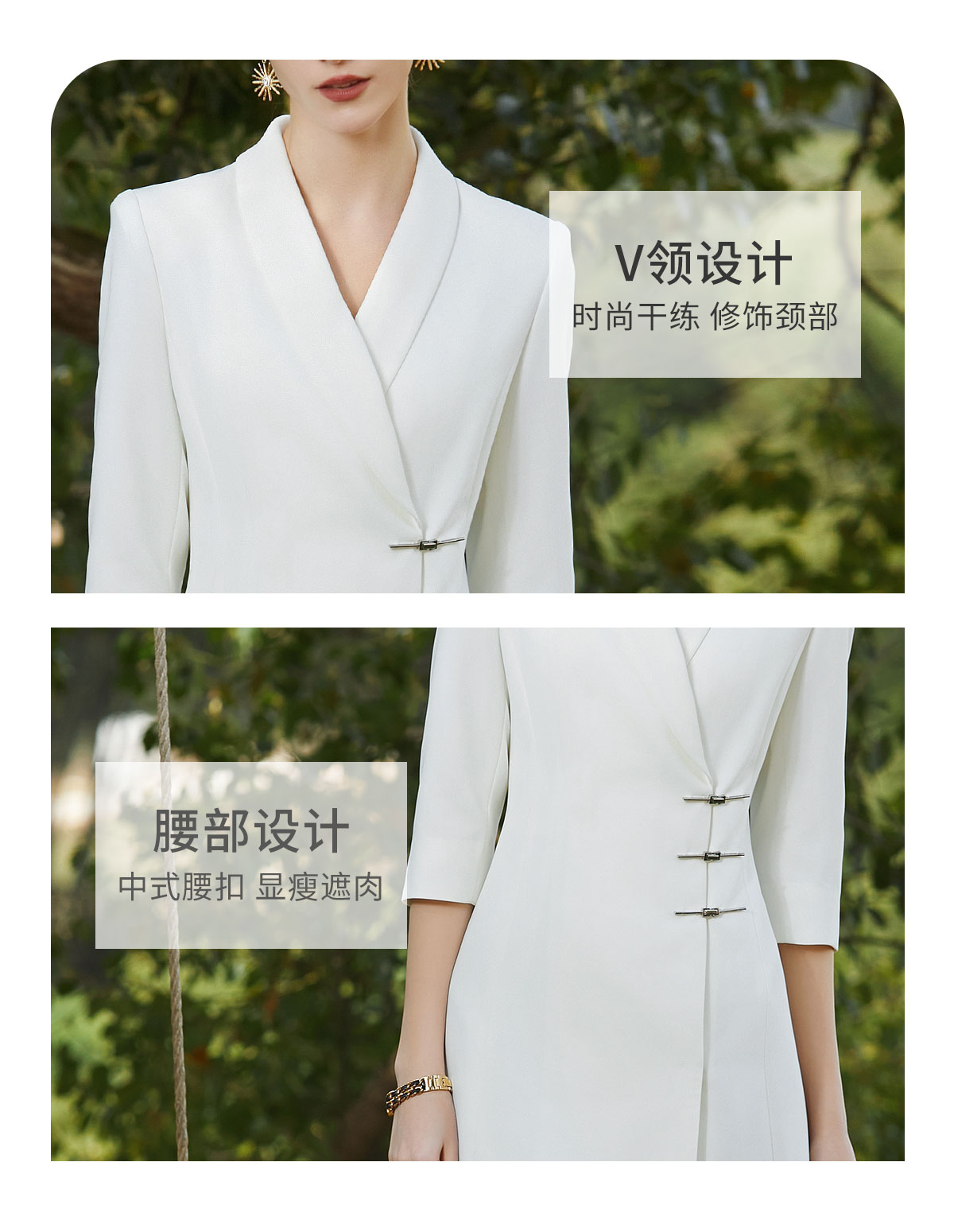 IWY/气质白色简约西装连衣裙女夏季薄款七分袖医美工作服职业套裙Q1131