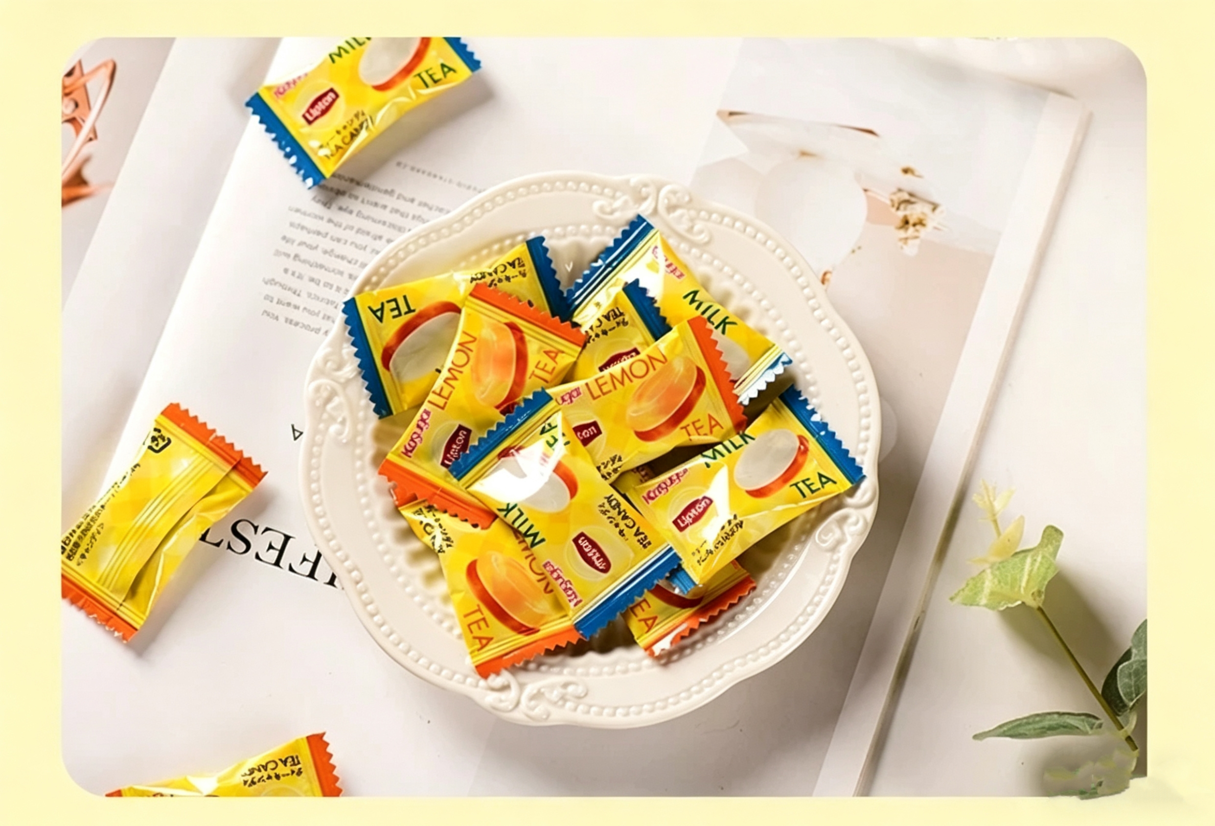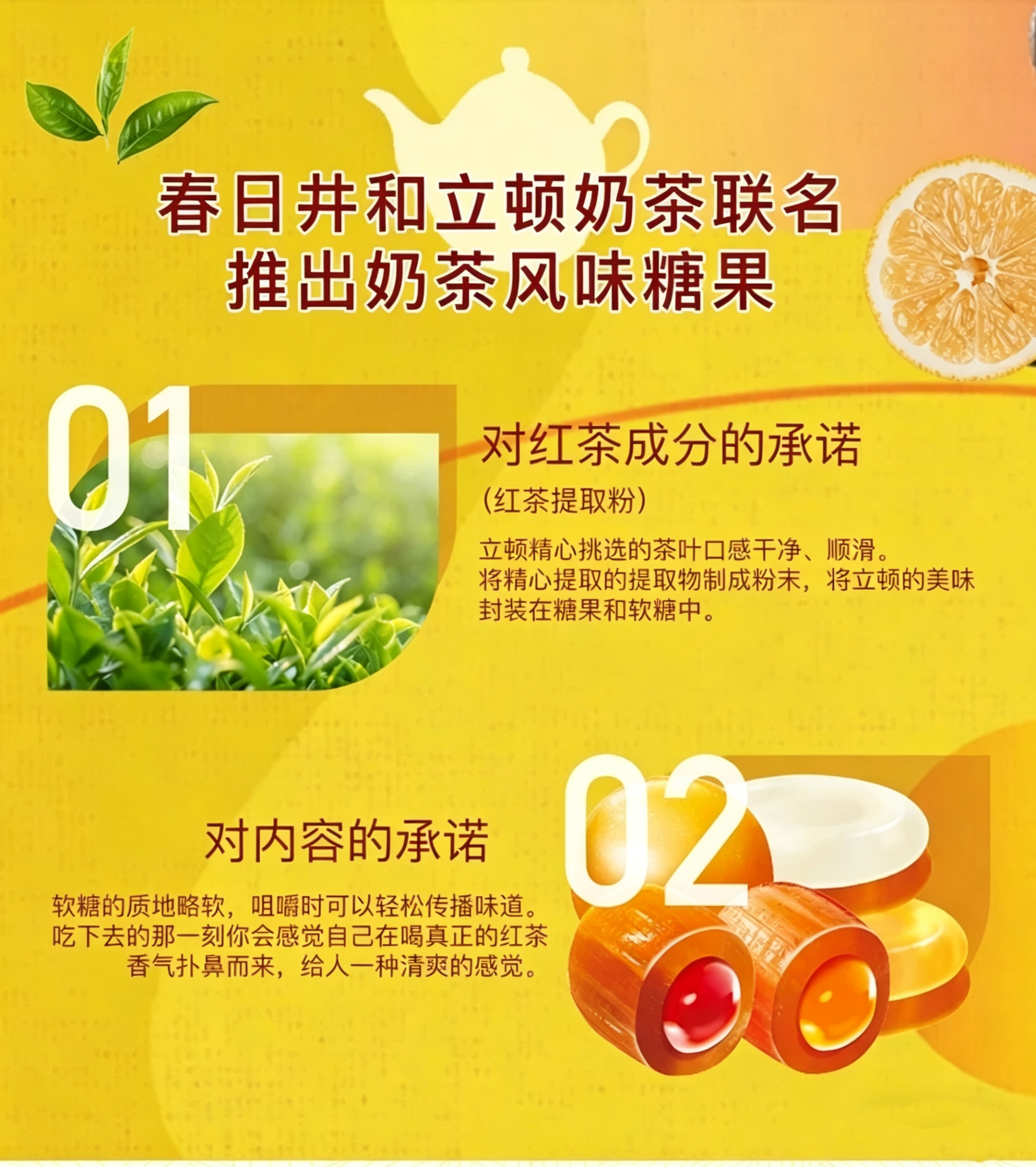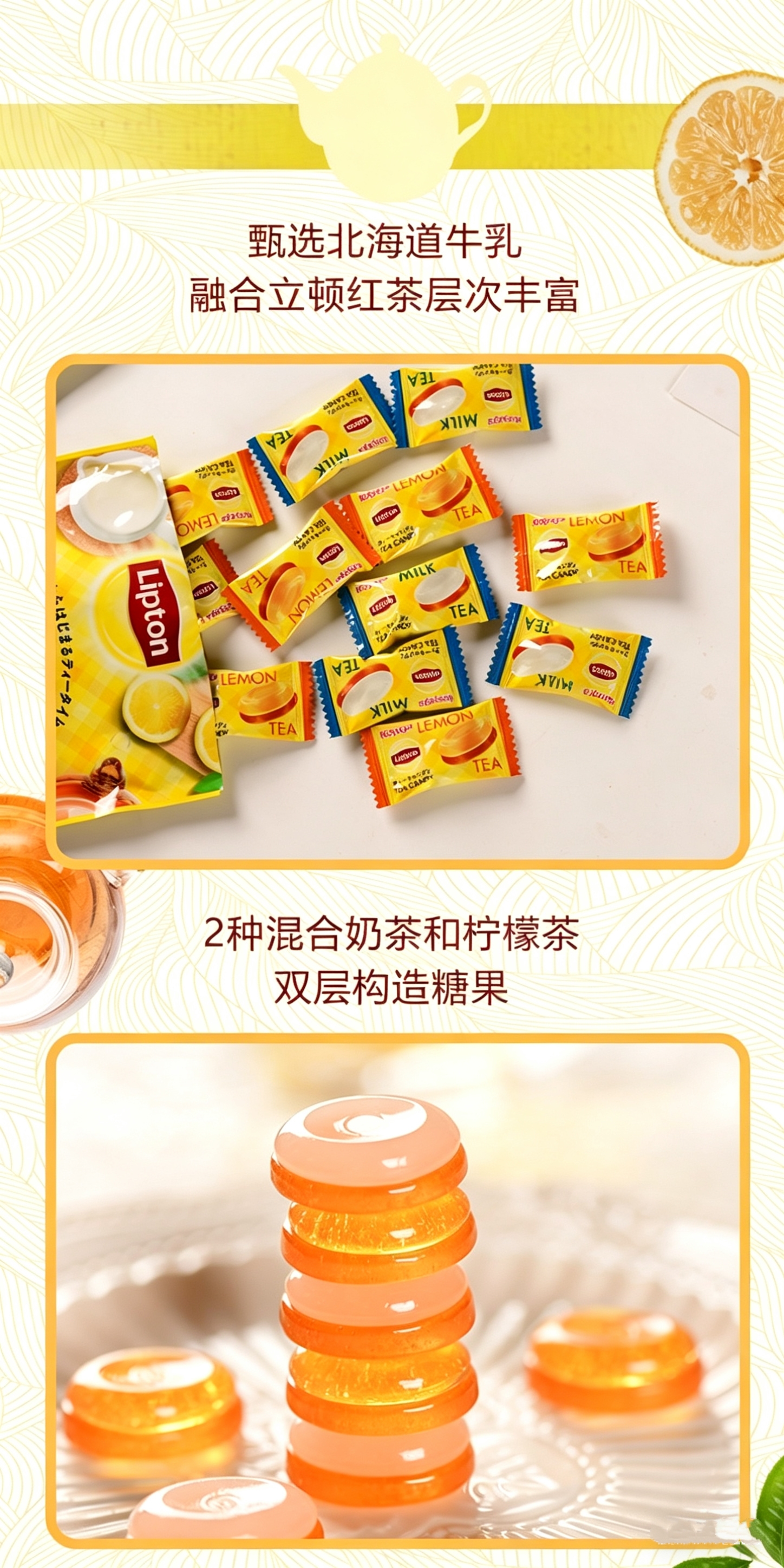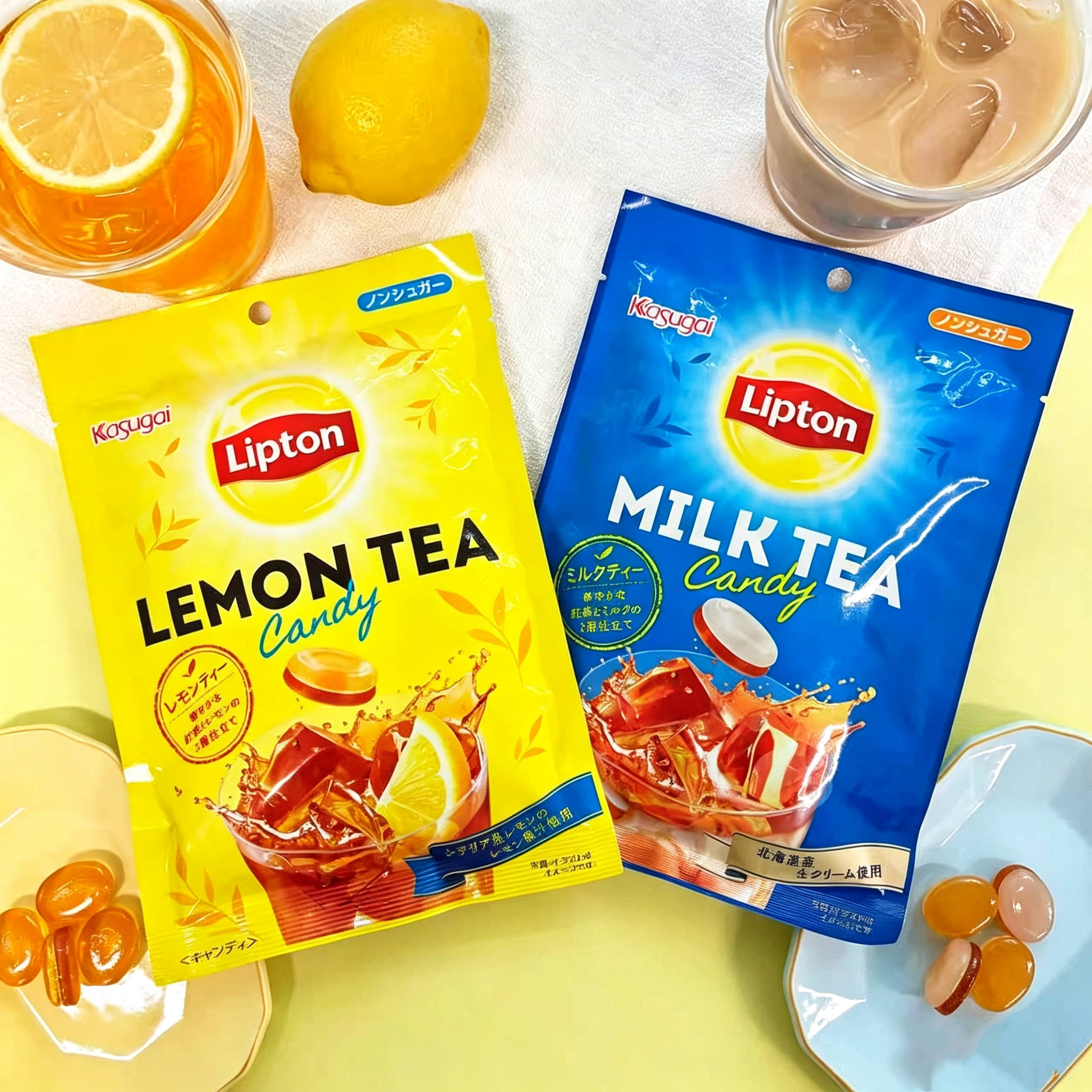 春日井立顿柠檬茶味/奶茶味糖果55g硬糖休闲零食袋装 064637/064638