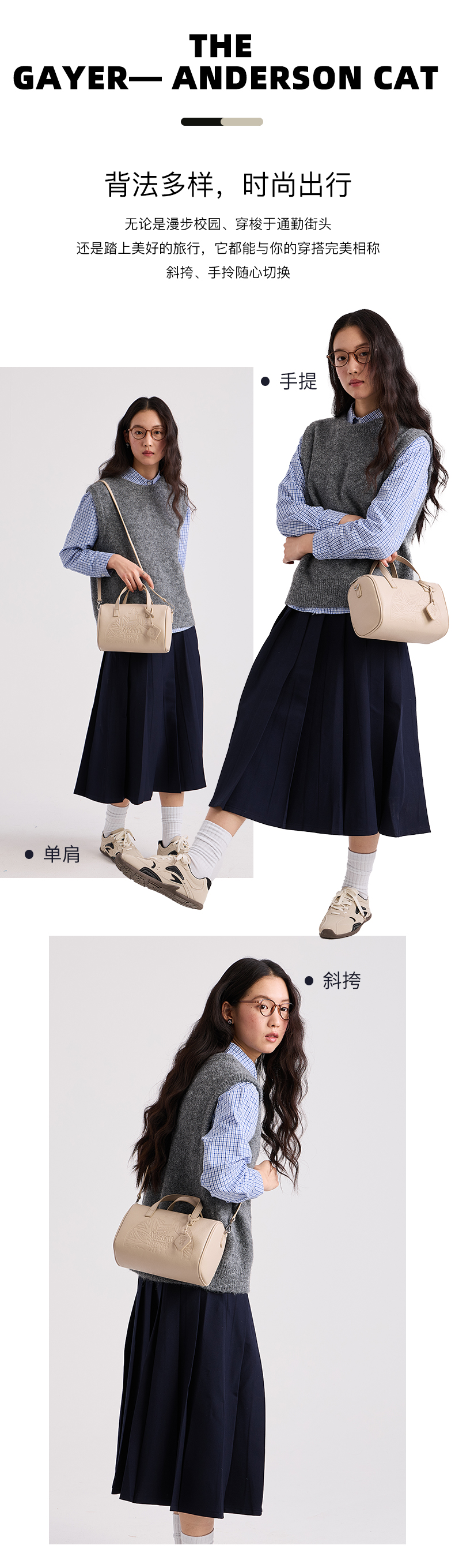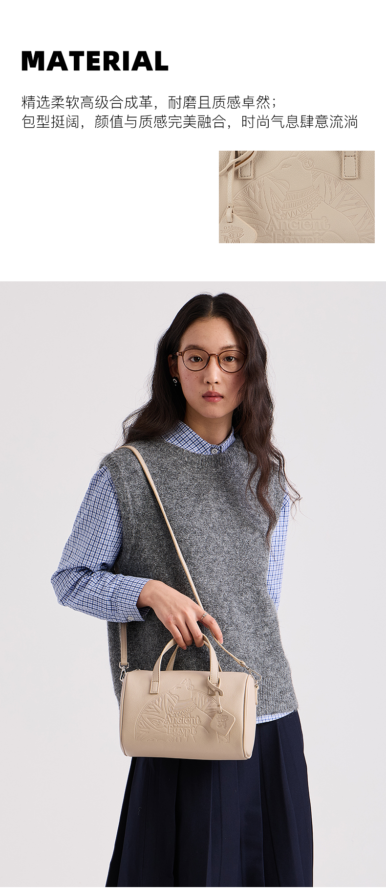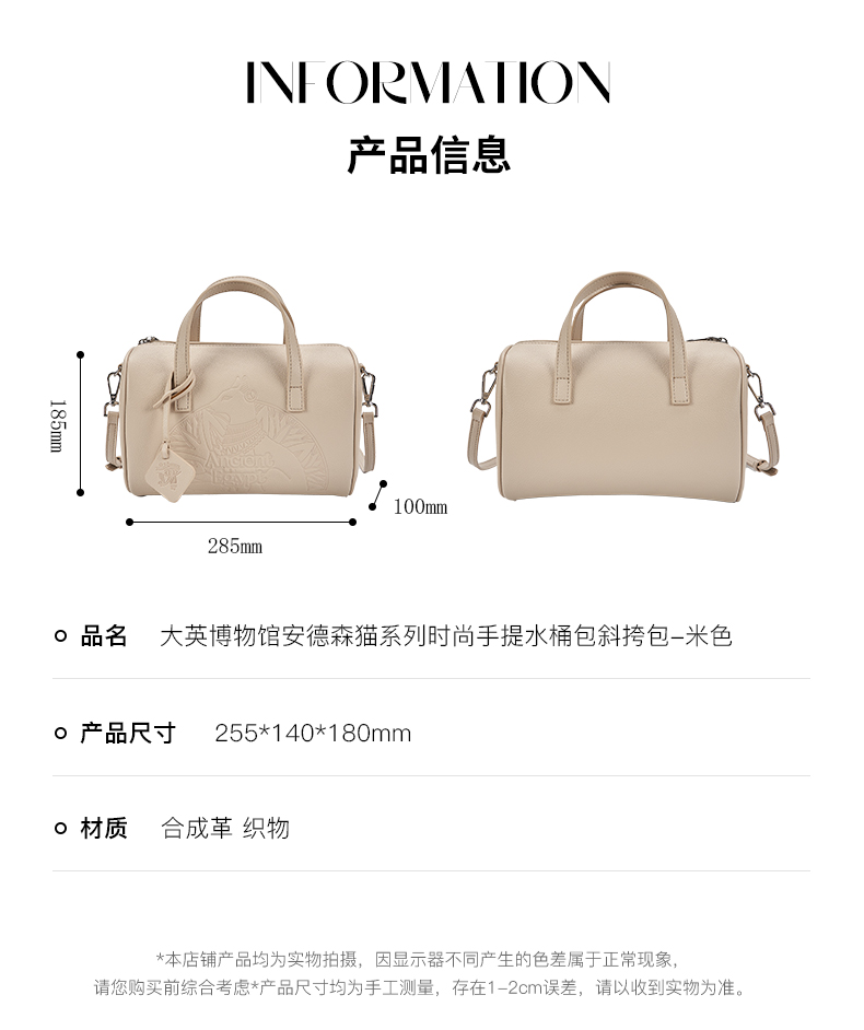 大英博物馆 盖亚·安德森猫系列 时尚手提水桶包 斜挎包 米色