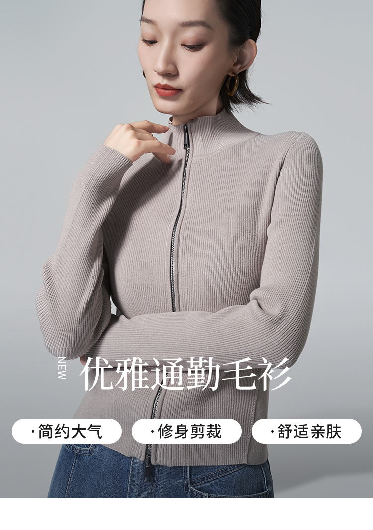 【商场同款】CNR6395 “ 浅灰色立领开衫 ” 软糯舒适 好穿好搭配 定染色系雅致好看