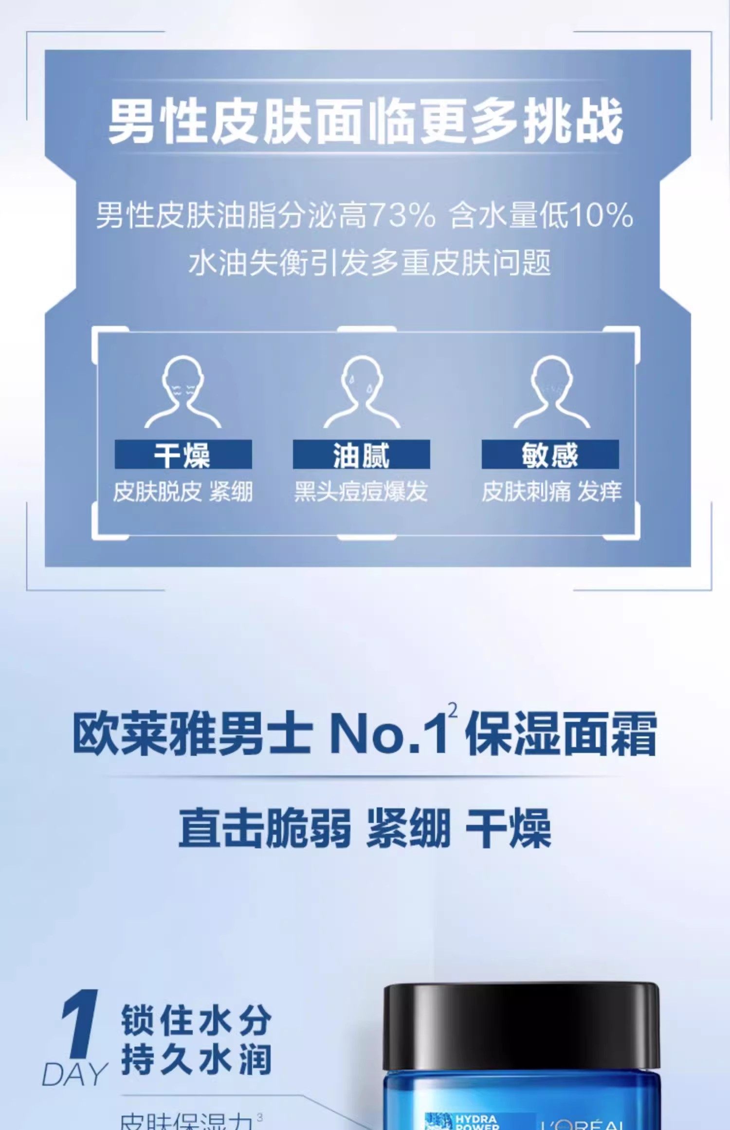欧莱雅男士补水保湿霜 强润霜滋润不粘腻擦脸油滋润乳脸部