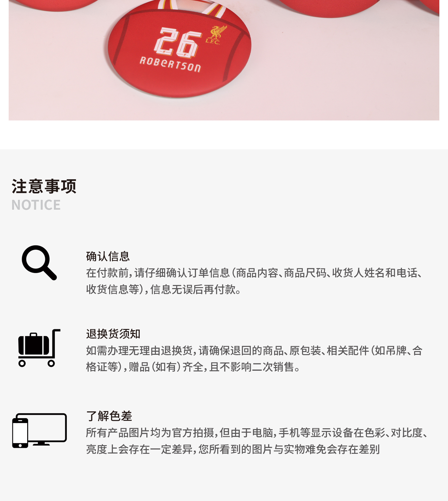 【官方正版】利物浦俱乐部|球衣加厚马口吧唧铁徽章纪念球迷