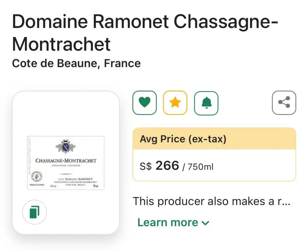 独特的香气融合了白色水果、矿物和草本植物以及杏仁的味道,口感细腻清新充满活力!就是最典型的Chassagne-Montrachet的味道!