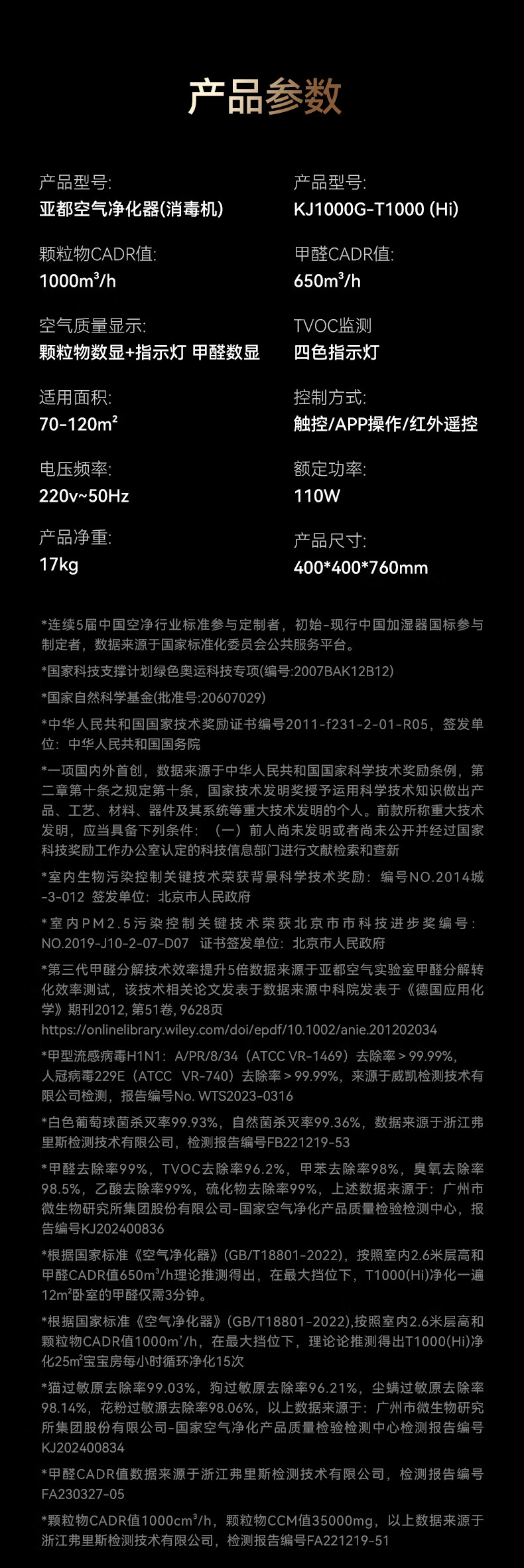 亚都(YADU)空气净化器 卫健委备案 冠状病消毒机 UFCO分解技术除甲醛除烟味异味KJ1000G-T1000(Hi)甲醛数显