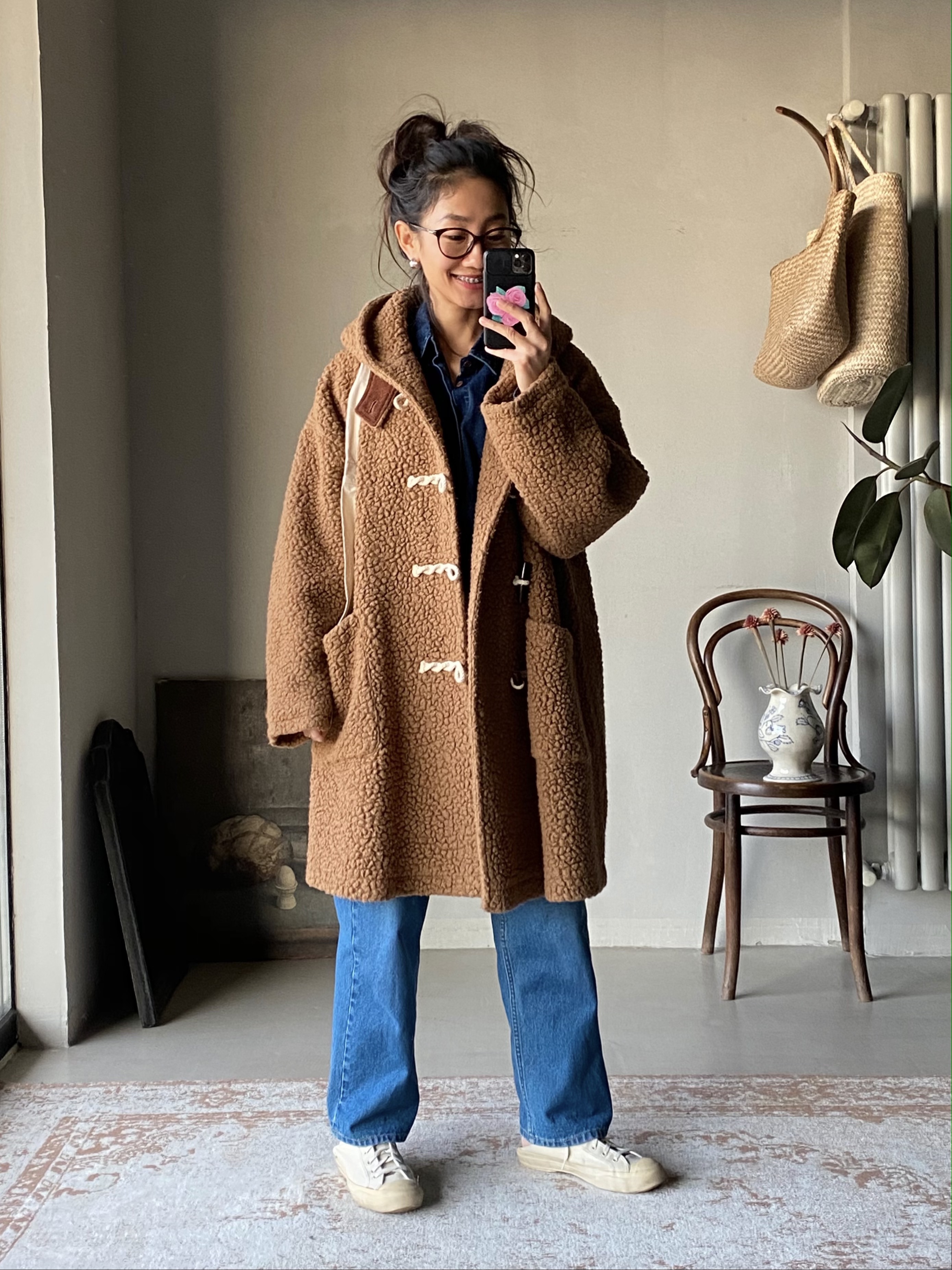 面料来自意大利,软糯卷曲,温暖十足。宽松阔形,包容身材。可长久陪伴。