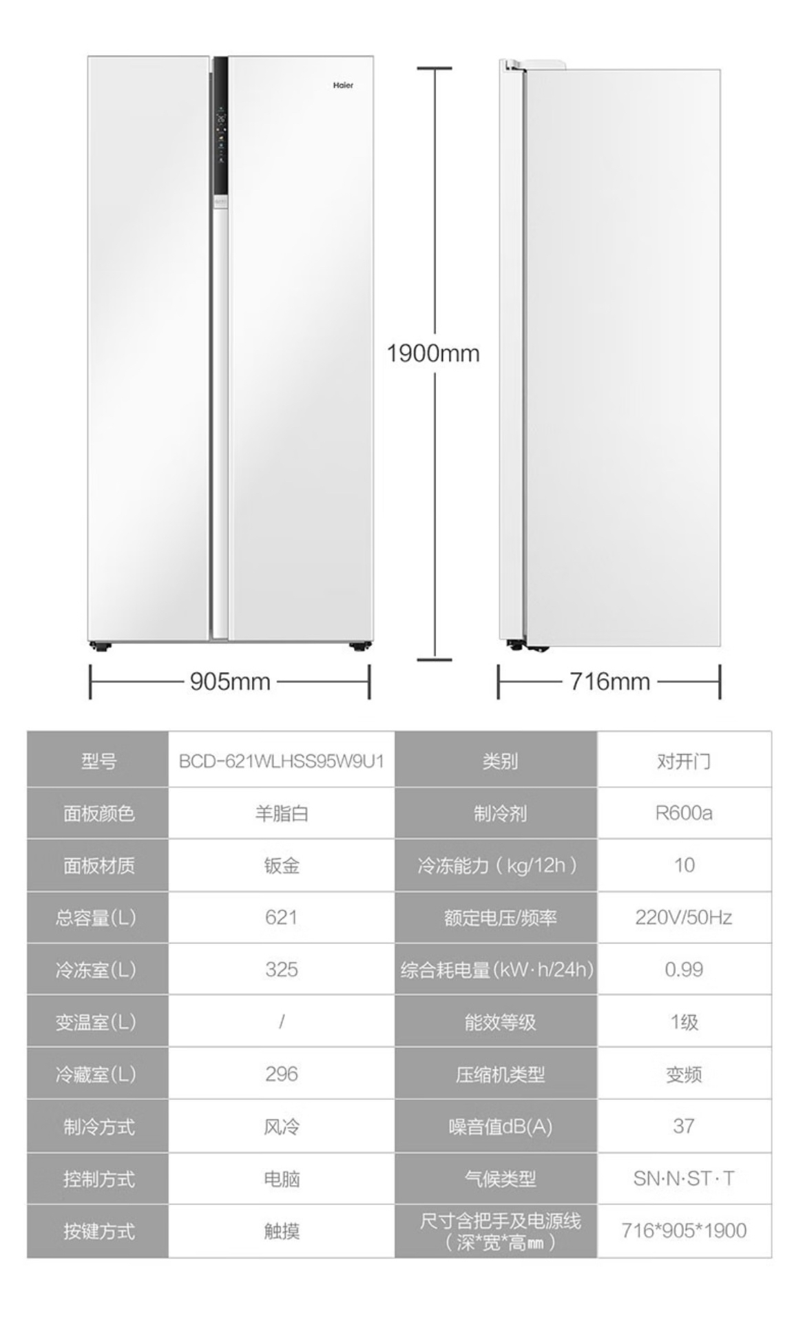 海尔(Haier)冰箱 BCD-621WLHSS95W9U1