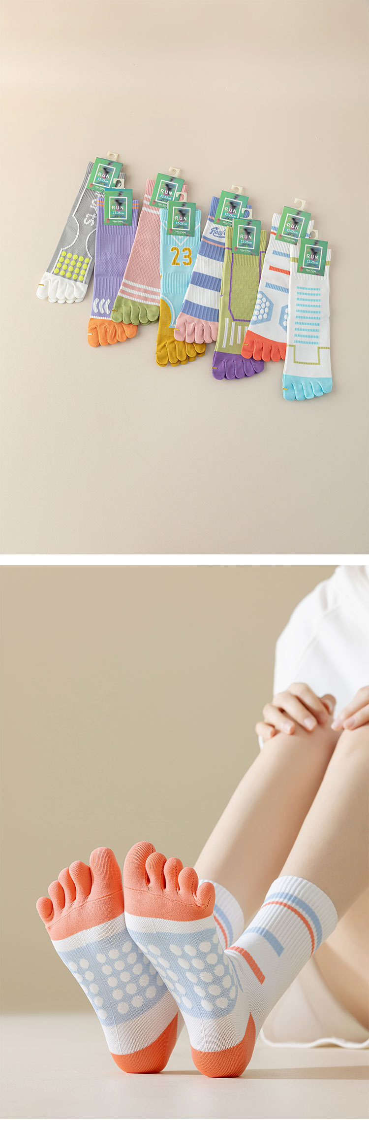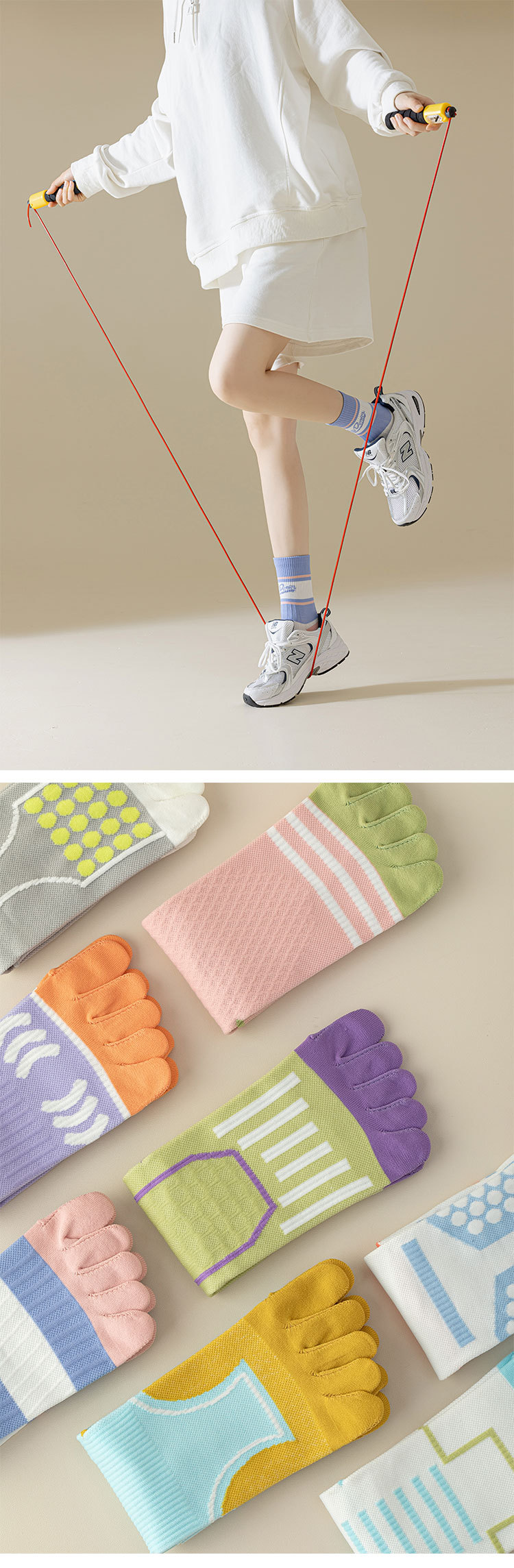 【非瑜伽袜】【新品】五指袜子女专业运动肌能全压力中筒袜健身跳绳跑步运动分趾袜潮袜