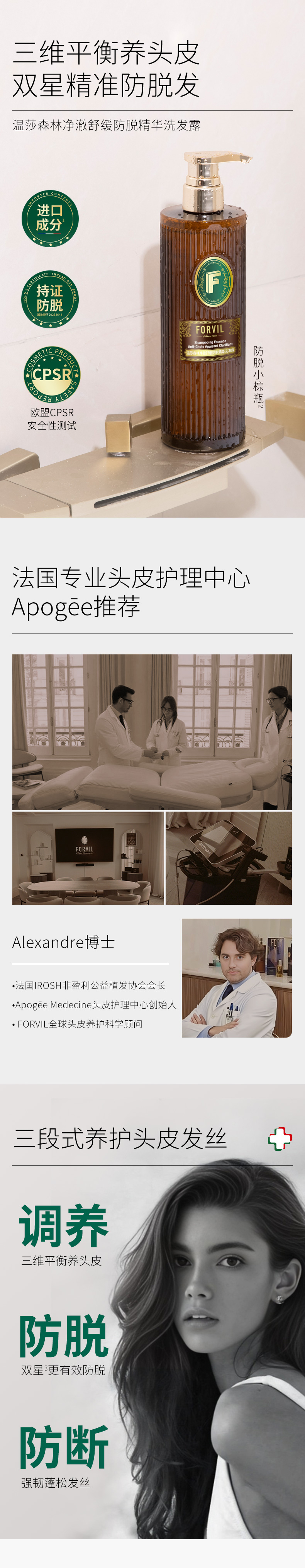 【防脱特证】温莎森林 净澈舒缓防脱头皮精华(15mL正装+15mL替换) / 净澈舒缓防脱精华洗发露520mL FORVIL法国技术中国制造