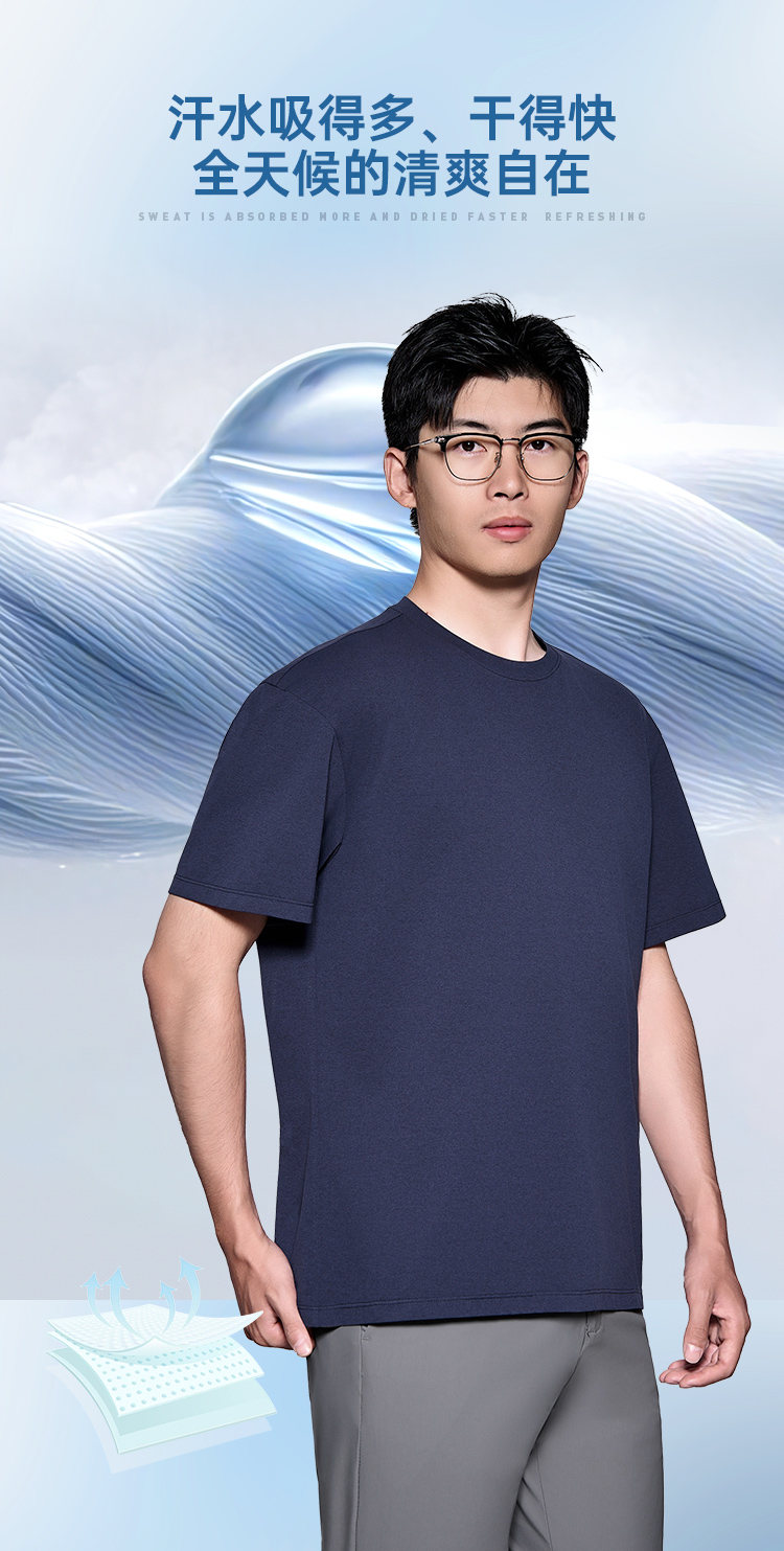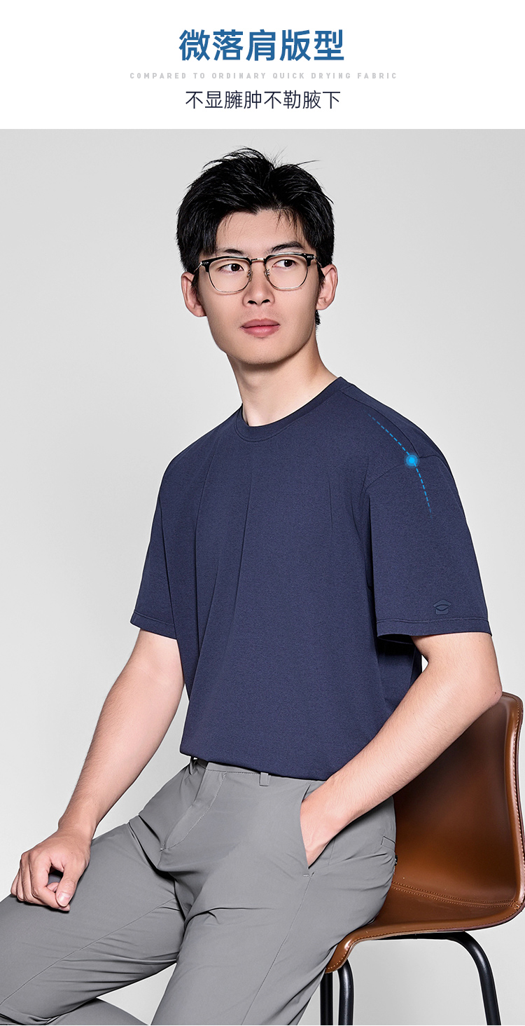 【轻爽棉吸湿速干微落肩短袖T恤】凉感休闲运动T恤四面弹力打底半袖TZ509