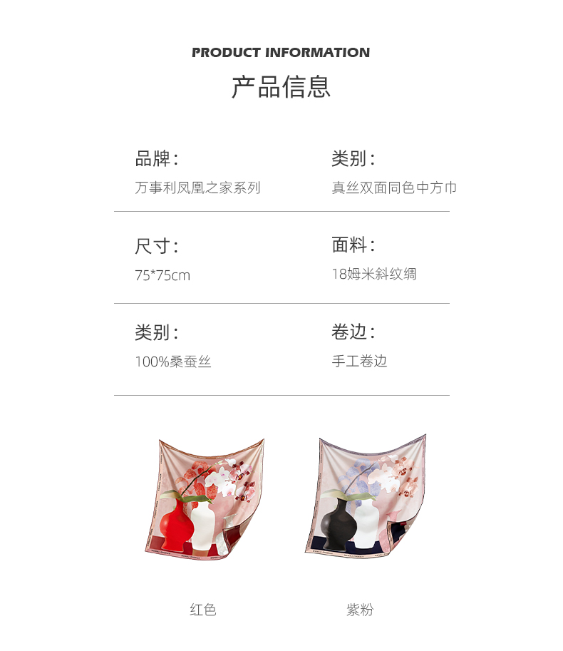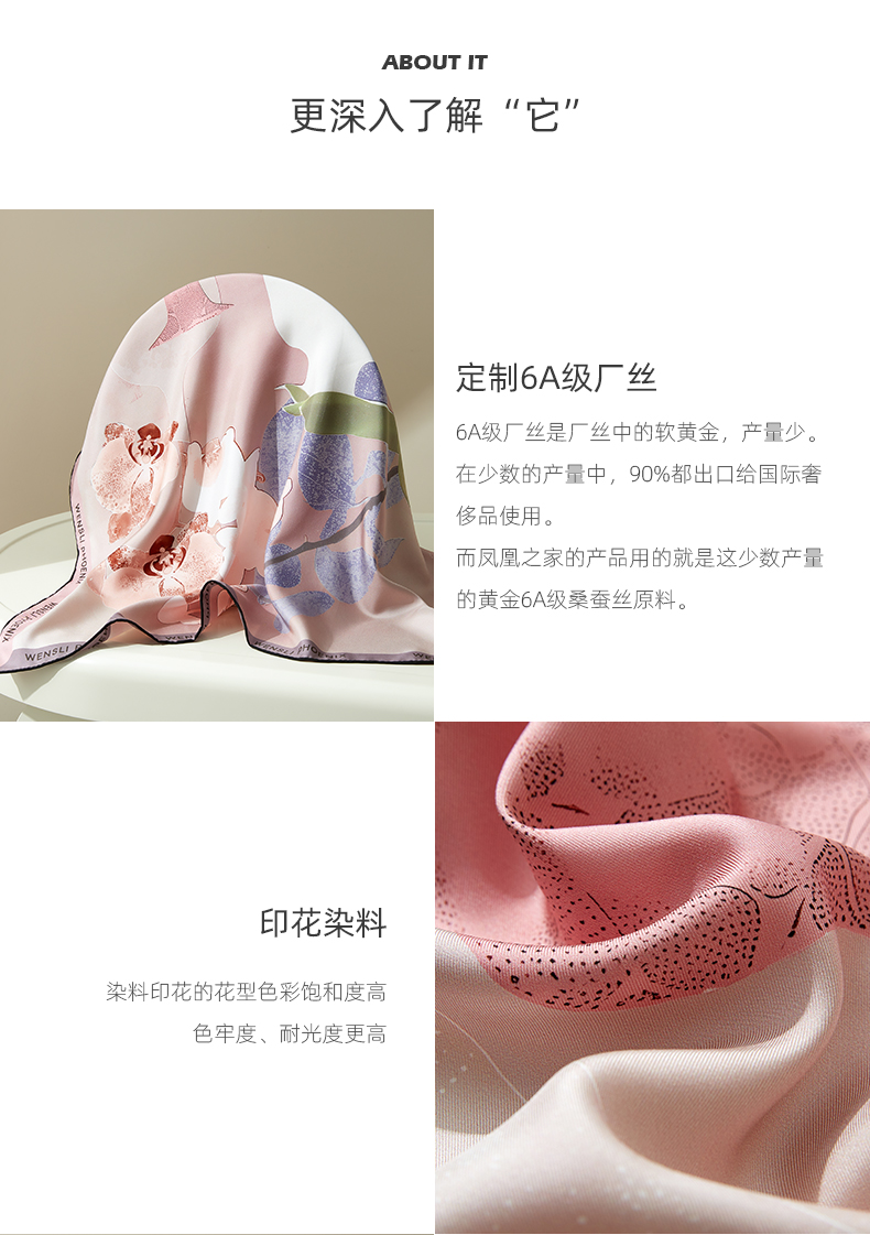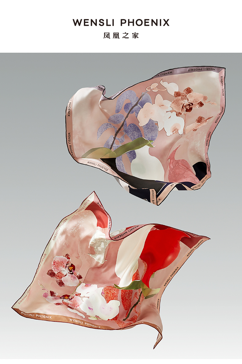凤凰之家“荏苒时光”75厘米双面印花中方巾