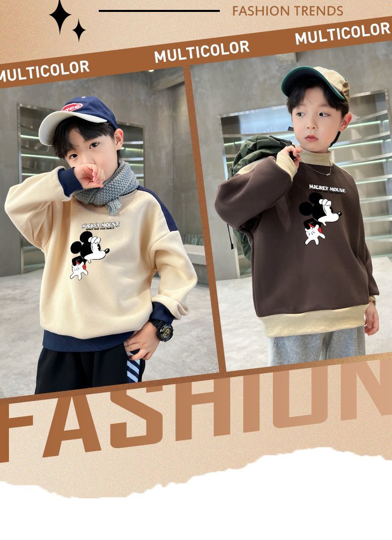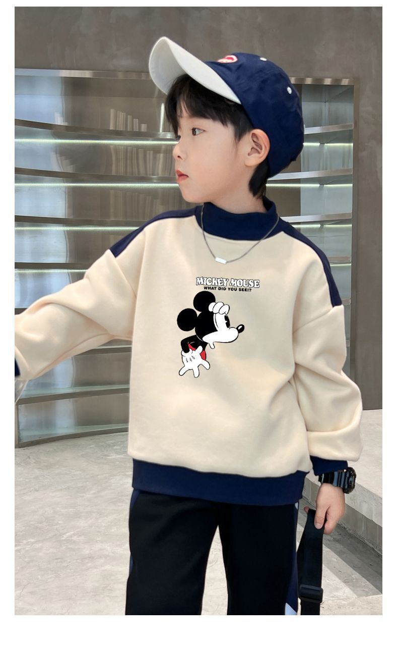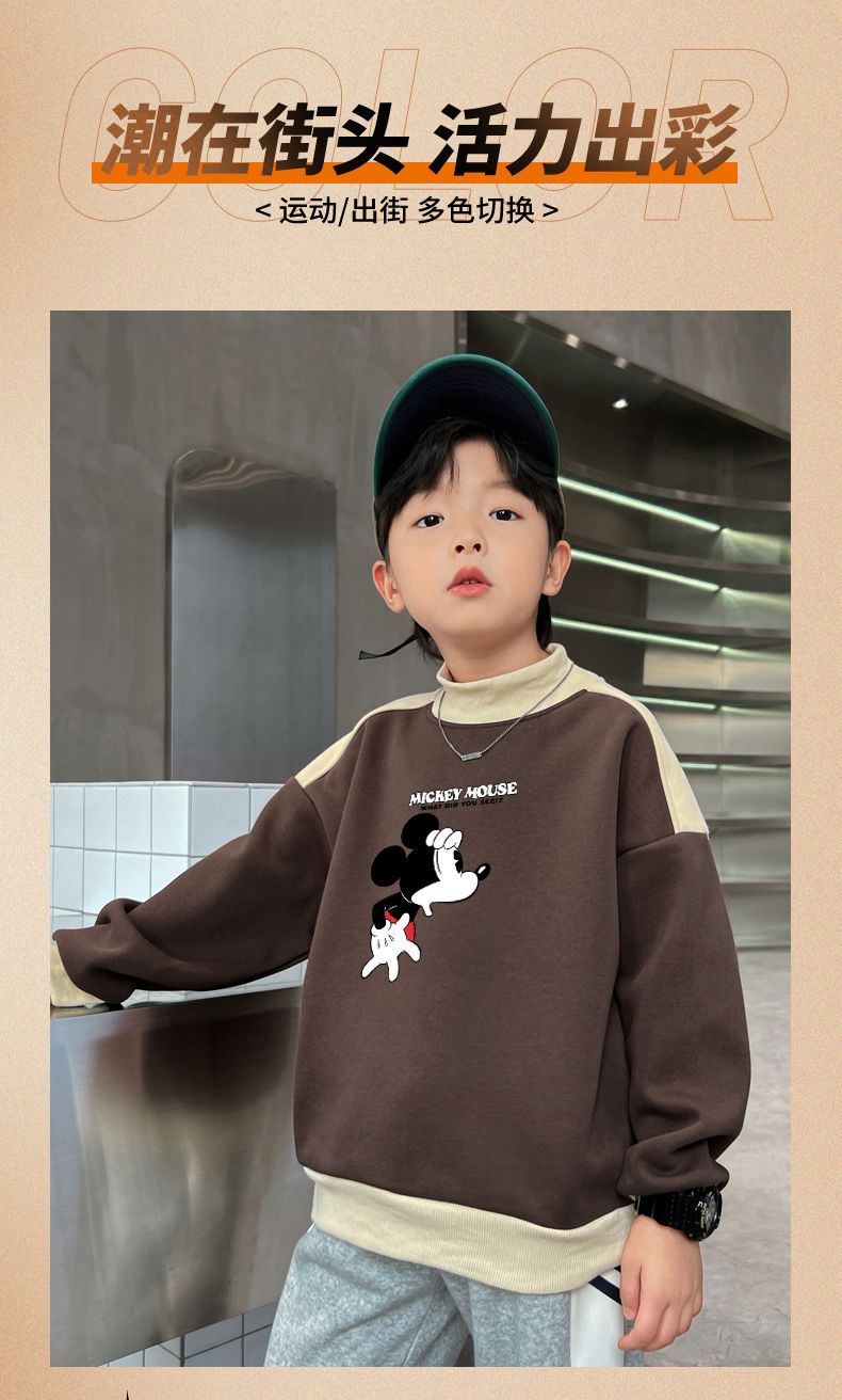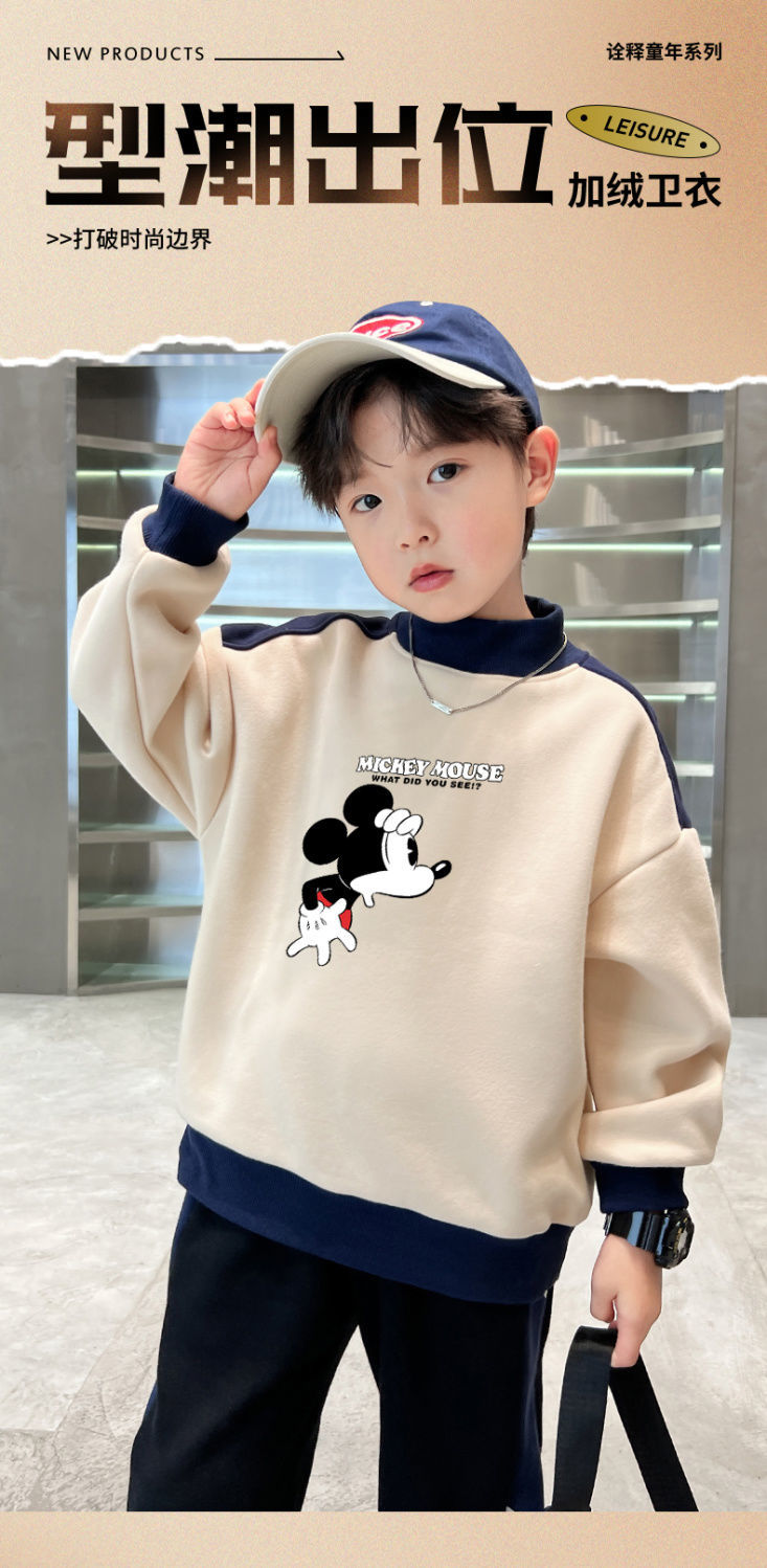 迪士尼儿童加绒卫衣一体绒男童打底衫冬季2023新款冬装大童保暖衣