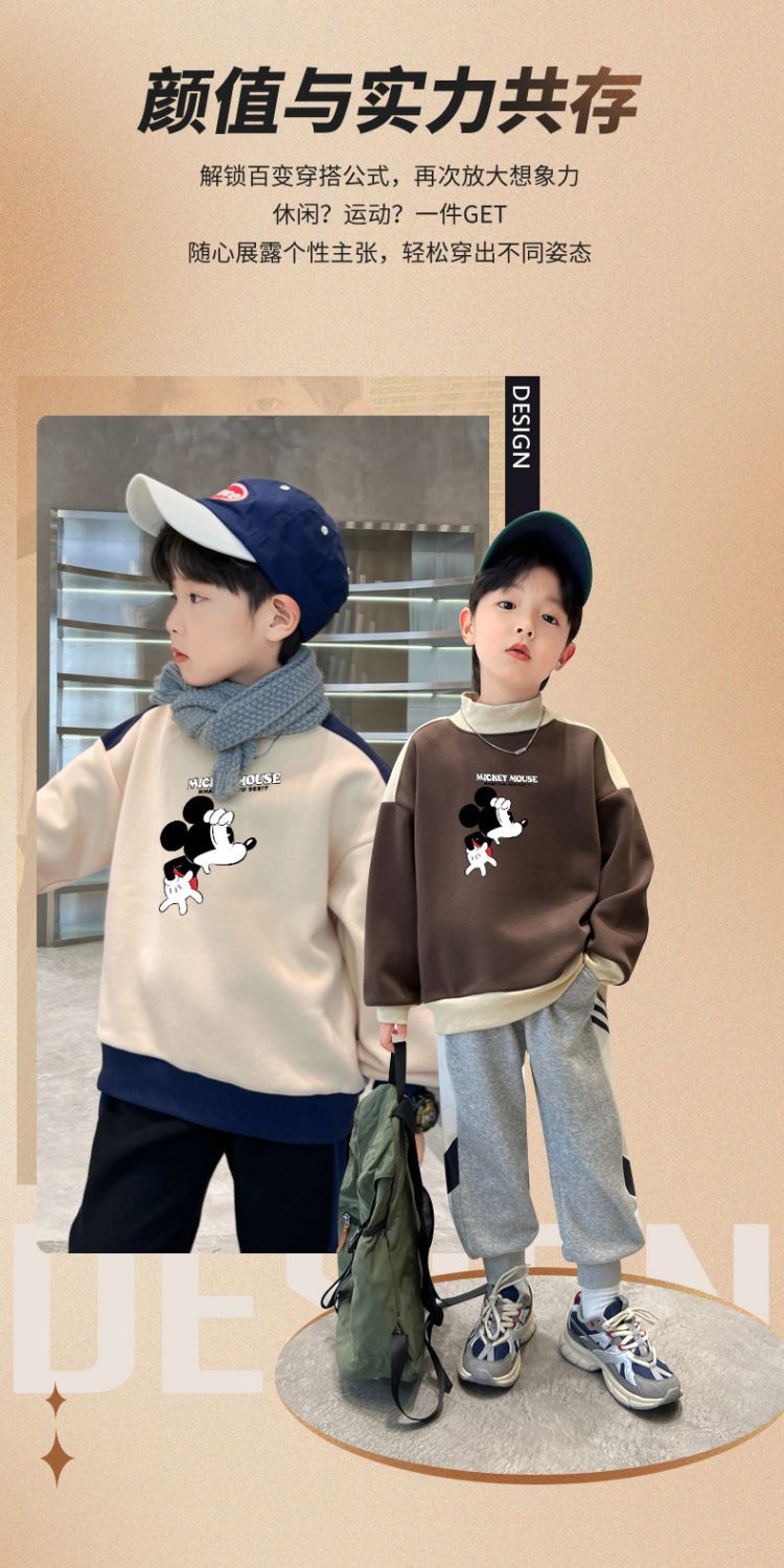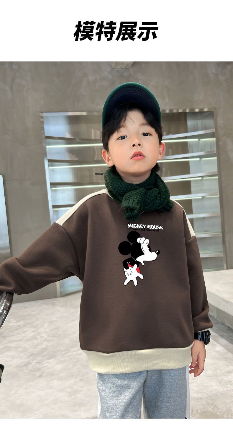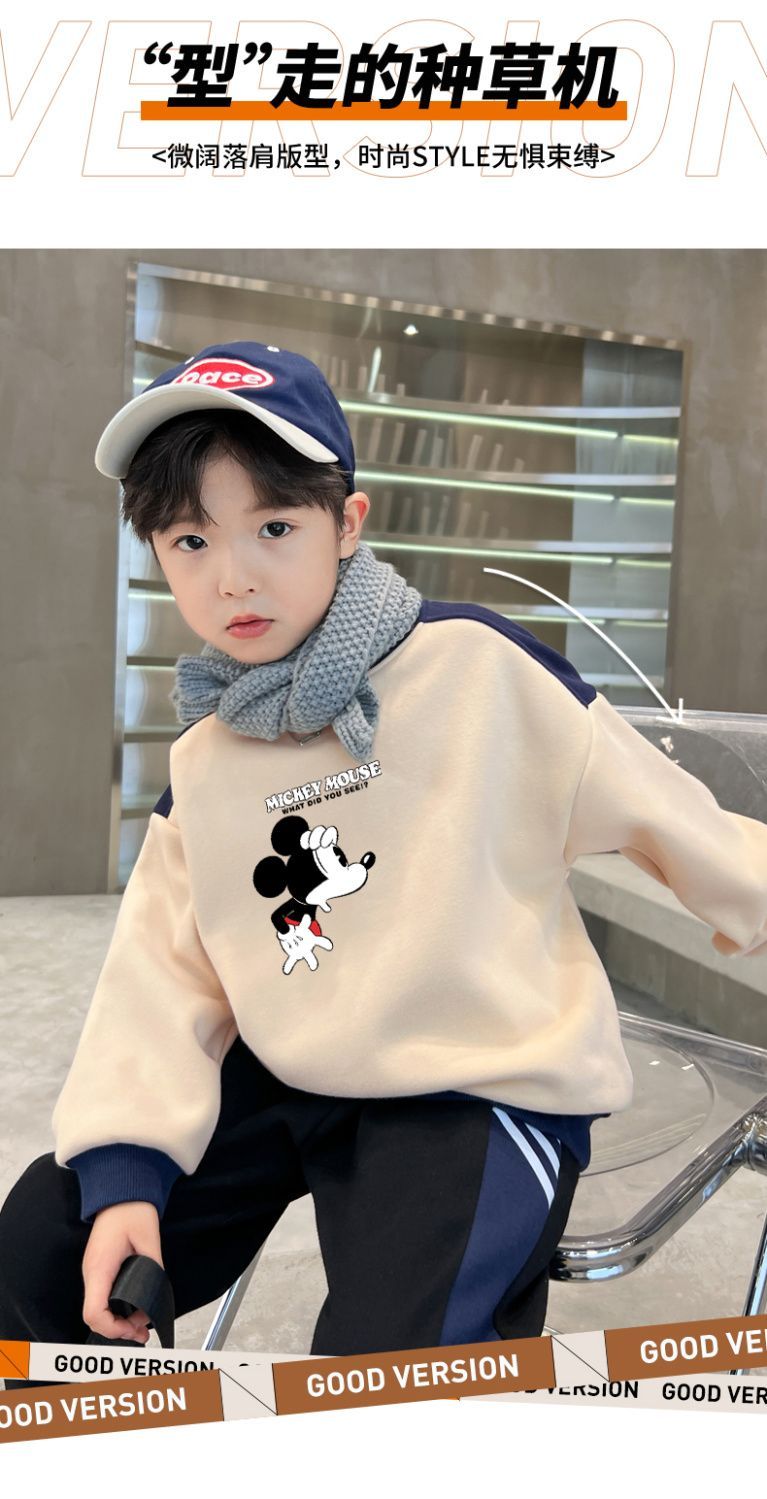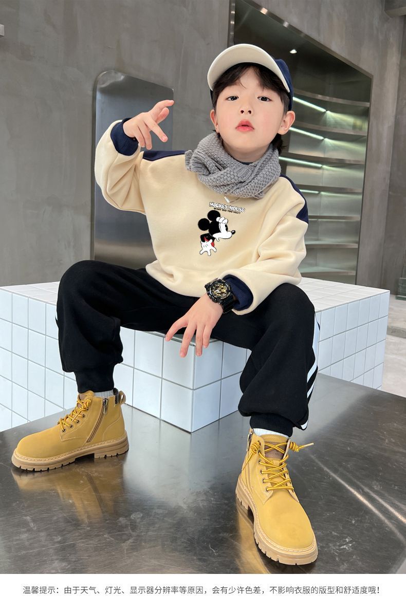 迪士尼儿童加绒卫衣一体绒男童打底衫冬季2023新款冬装大童保暖衣