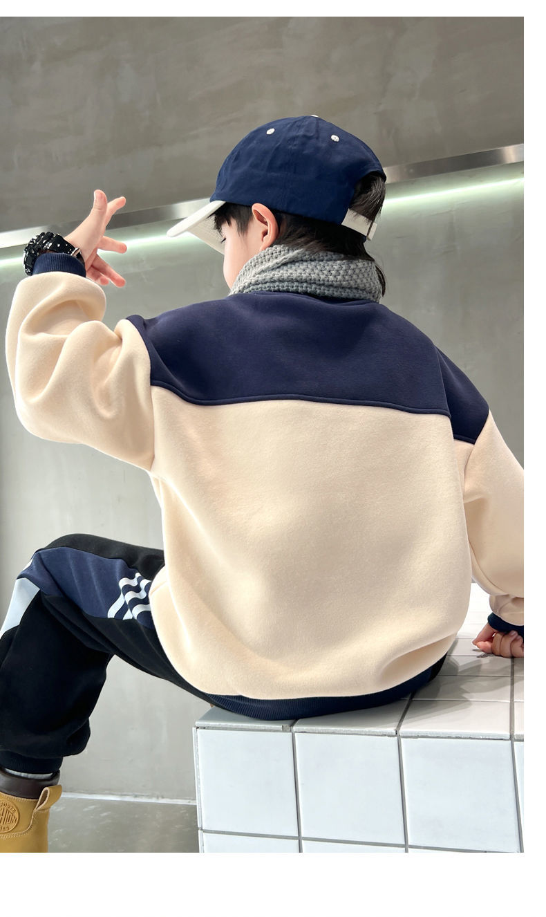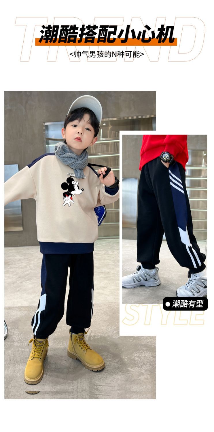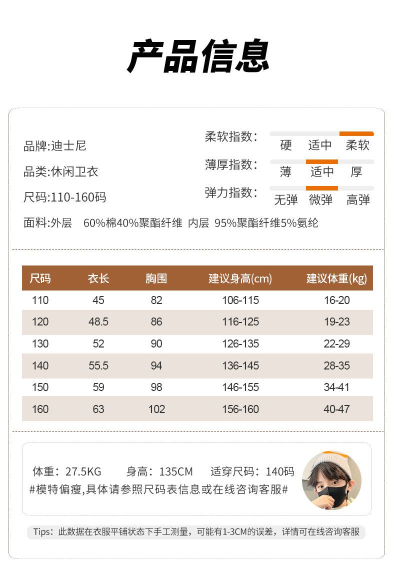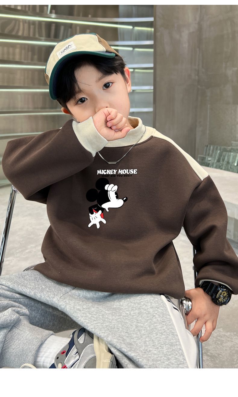 迪士尼儿童加绒卫衣一体绒男童打底衫冬季2023新款冬装大童保暖衣