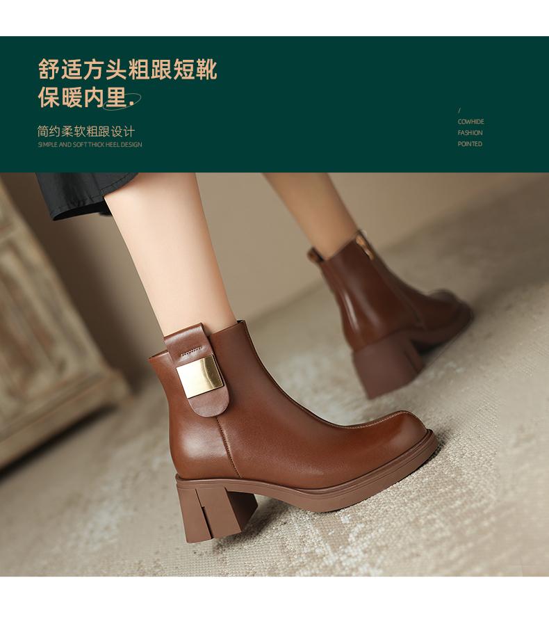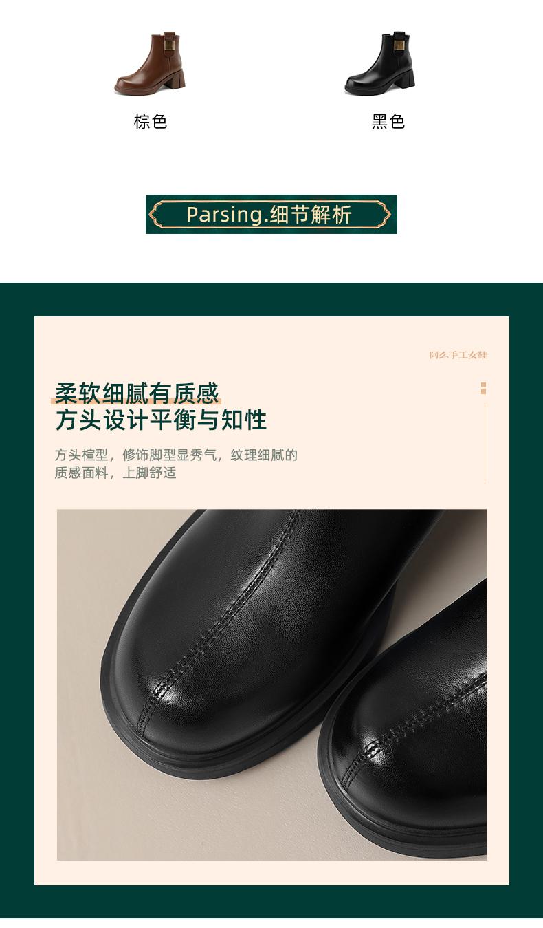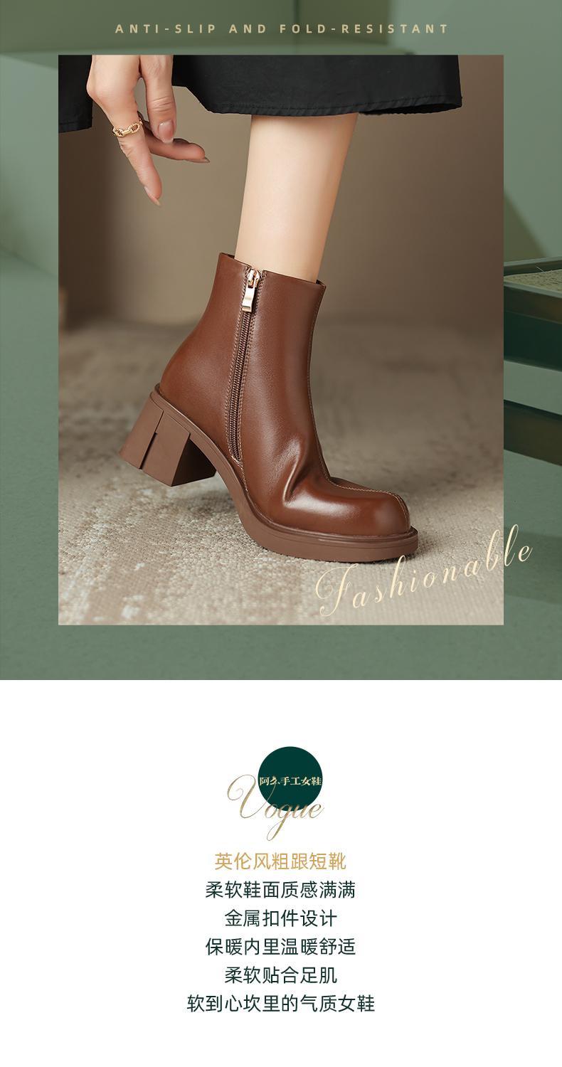 阿么手工女鞋真皮防水台高跟短靴秋冬时尚复古气质圆头时装靴6CM