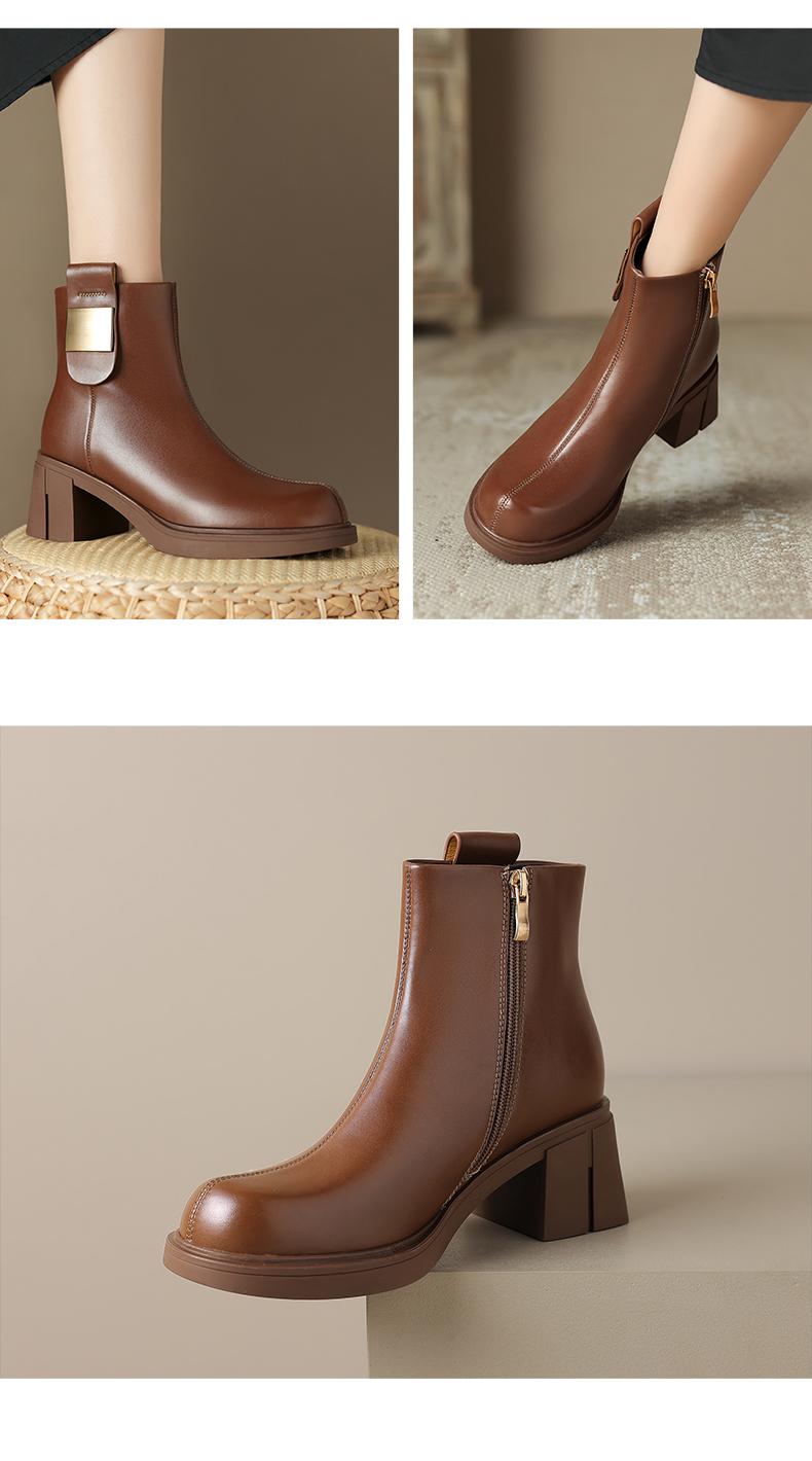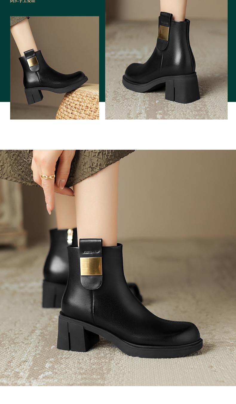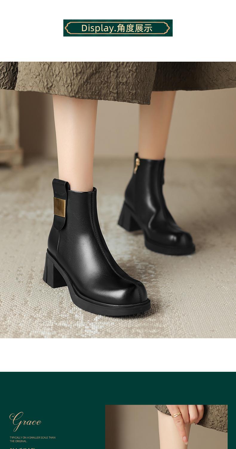 阿么手工女鞋真皮防水台高跟短靴秋冬时尚复古气质圆头时装靴6CM