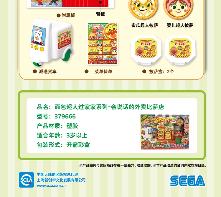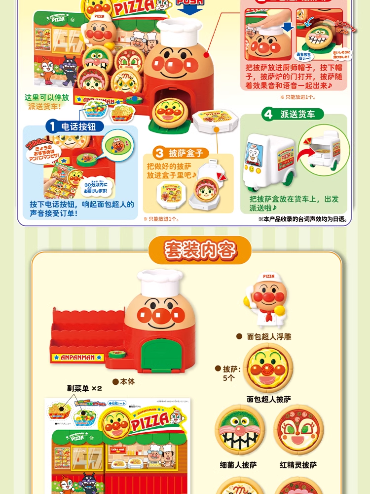 万代 Bandai 面包超人过家家系列-会说话的外卖披萨店BANC379666