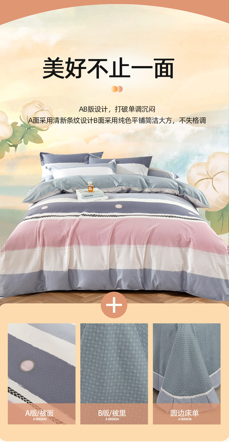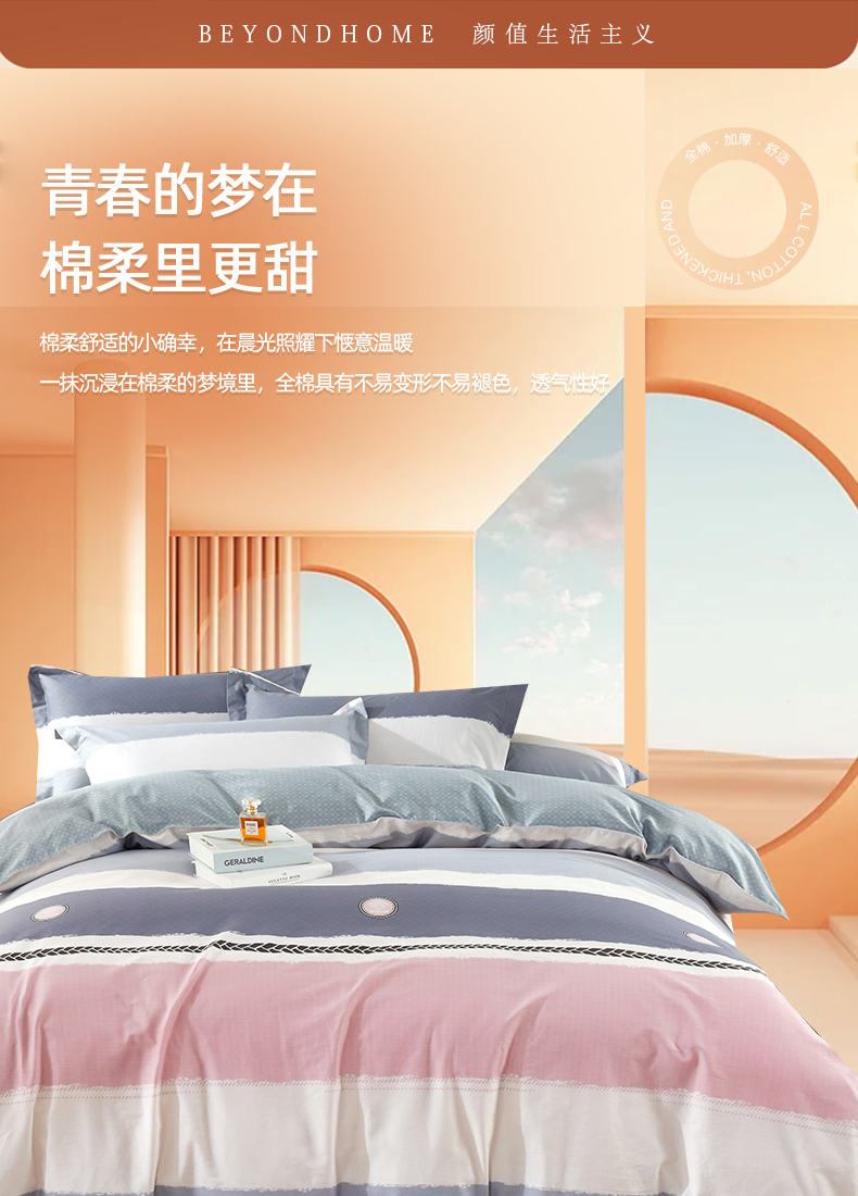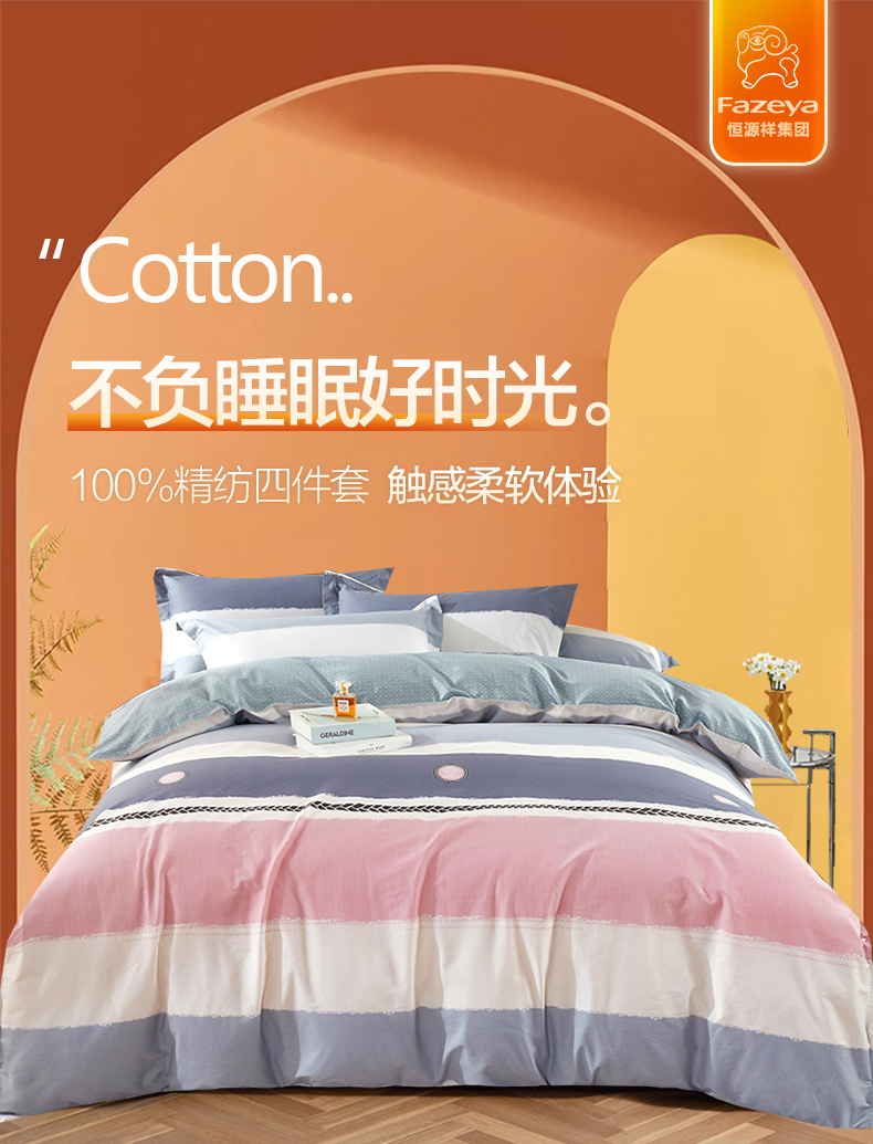 恒源祥Fazeya彩羊精纺四件套-旅途(粉)(被套:200*230cm、床单:245*250cm、枕套:48*74cm*2)【分仓直发,72小时发货,周末节假日不发货】